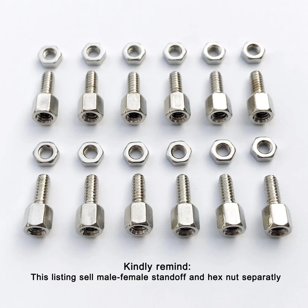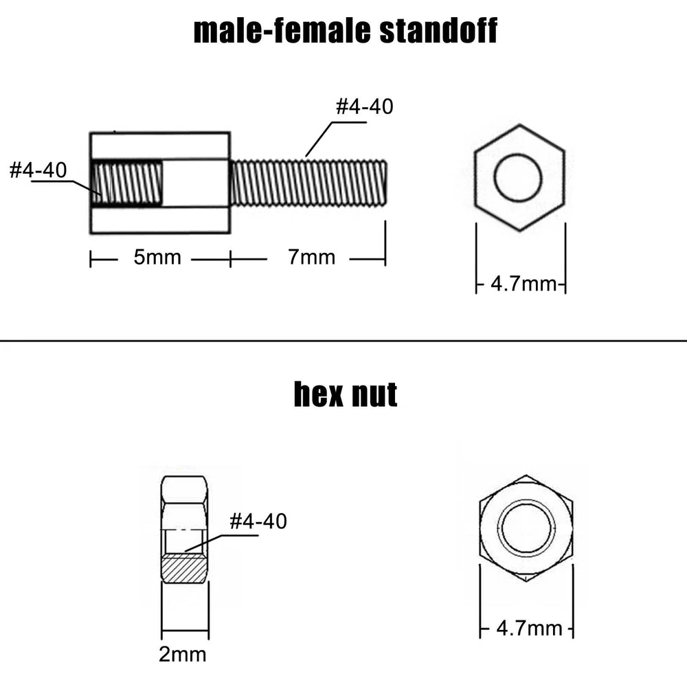 #4-40x5+7 Jackscrew M-F Cylinder Screw fo Motherboard VGA DB9 DVI COM Port Kindly remind: This listing sell standoff and nut sepraterly Material: Male-female standoff: brass(nickle-plated) Nut: steel(nickle-plated) Size: Male-Female standoff : #4-40 x 5(spacer length) + 7mm(outside thread length) Nut: #4-40 On Dec 14, 2024 at 21:44:26 PST, seller added the following information: