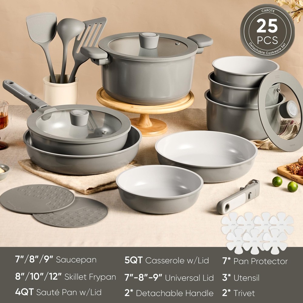 Absolutely love this set! The detachable handles make storage a breeze, and the nonstick surface is incredible—everything slides right off. Perfect for my small kitchen and the quality feels professional.