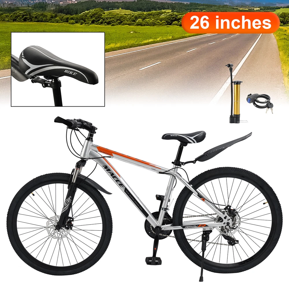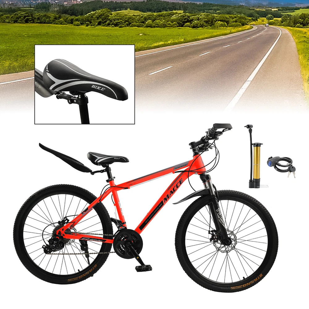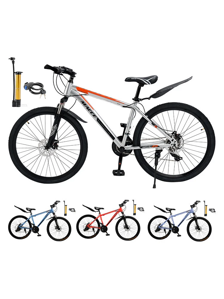 Mountain Bike Features: 1: Mens/womens bikes. 2: Fashionable and advanced Suspension. 3: Disc brakes-Mechanical. 4: The bicycle has been adjusted for shifting and braking before leaving the factory, and the disc brakes are automatically adapted. If the brakes are not tight, you can appropriately adjust the tension of the brake cable of the disc brake. 5: Easy to install, please consult customer service if you need installation instructions. Specifications: Color: Decals in paint Speed: 27 speed Frame: High carbon steel Front fork: Spring Suspension Fork Hub: Disc brake hub Center shaft: 3S shaft/sealed shaft Thumbshift: One-piece thumbshift Chain: 110 variable speed chain Flywheel: 9 tower wheel Brakes: Dual disc brakes Rim: Aluminum alloy Package Included: 1x Bike -About US Founded in 2012, VIPJQ have professional development and sales, and are involved in various products, providing customers with various high-quality products. Since its establishment, VIPJQ has always adhered to the service concept of "customer first" and the management concept of "pursuit of quality", and is committed to providing customers with high-quality original designs. We commit to provide you the best innovative, quality products & professional services with competitive prices. We value every customer, and we look forward to providing solutions for your business needs to help your business achieve its goals, please contact us immediately! We are all about you! We are a Japanese seller,but with large warehouse in USA. We are profesional on Auto Parts,Car Parts,Motorcycle Parts,3C,other hot sale items and so on. We aim to provide to customers high quality product and best service. -About Shipment&Returns The item usually will be dispatched within 3 days after you ordered.All are free shipping. And it usually takes 3-5 working days to delivery depends on buyers' address or other majeure on the way. If you are not satisfied with the items and want to return the item,we hope you could message us first,we will give you the return details, we think we could give you the best service to save your time and money.Thank you. -About Feedback&Customer Service If you are enjoy your shopping here,not only enjoy the items but also the service,we are appreciate you could give us a 5-star feedback. If you are not satisfied with the item,before you give us the negative feedback,we hope we could give you the best solution through our commutication. We think we could do it if you give us the chance.Thank you.