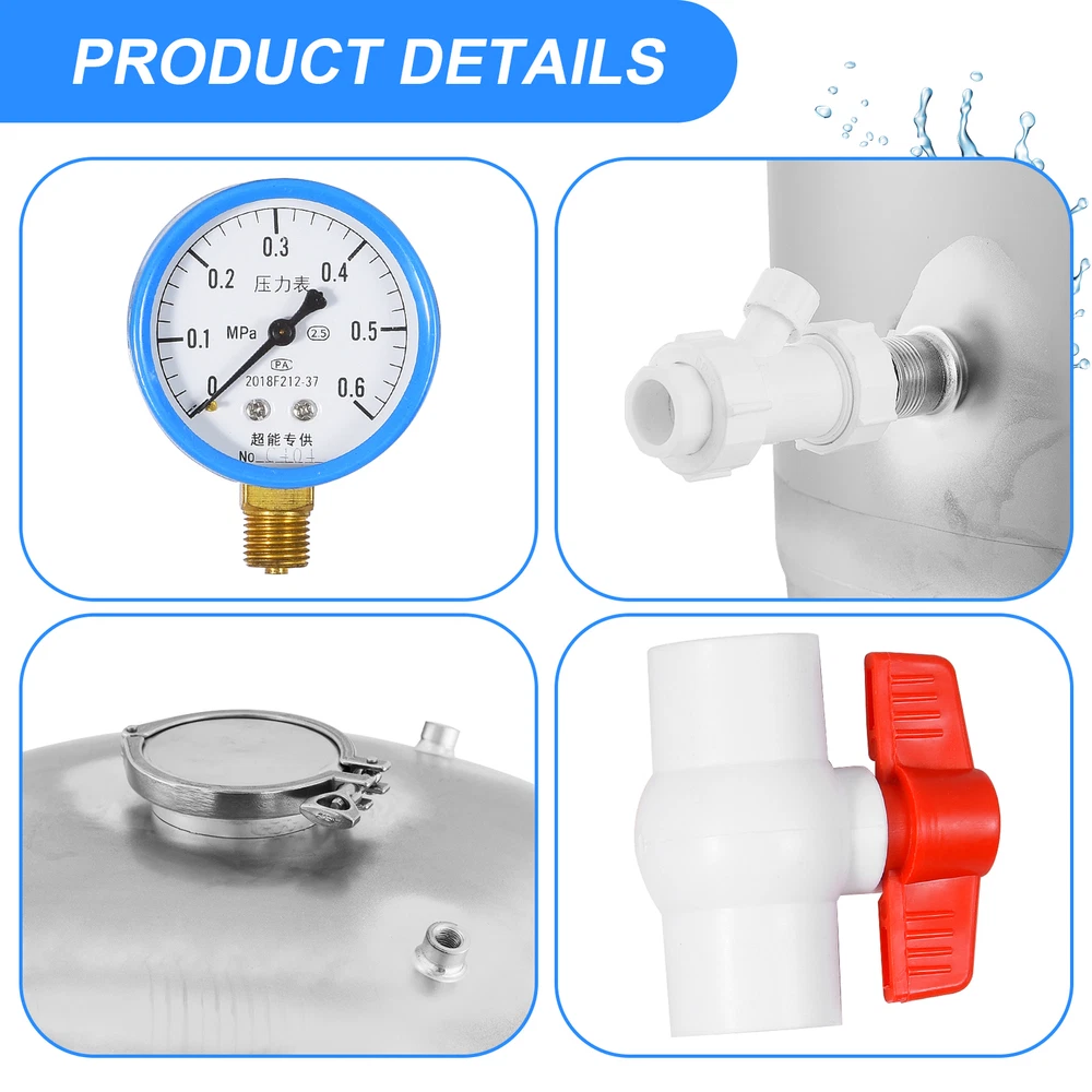 Store category Sign Up Now ! You may also like Product Description Bullet Points: Heavy duty stainless steel: Built to withstand extreme temperatures from -60 to 60 , this heavy-duty stainless steel well pressure tank is odorless and environmentally friendly. Can withstand 6kg pressure: Withstanding pressure levels up to 6kg, features an automatic discharge port, and includes a convenient cleaning port for easy maintenance. Its robust construction ensures a steady work pressure within 3kg. Improved Water Output: Our stainless steel well pressure tank helps in boosting low well water pressure, increasing water flow, and improving water supply efficiency, providing uninterrupted and reliable water flow. Automated Water Functioning: Experience uninterrupted water supply with our stainless steel well pressure tank. Its pneumatic supply principle enables automatic pumping and cessation when water decreases and fills up respectively. Flexible Water Storage: This stainless steel well pressure tank provides a versatile solution for all your home's water needs, from pumping well water and pressurized tap water to industrial cleaning. With high and low temperature resistance, automatic discharge port, and automatic stop when full, this tank ensures optimal performance and durability. Product material: stainless steel Product model: 100L Product size: 40x90cm/15.75x35.43 inches Product applicability: schools, factories, households, irrigation Product List: 100L stainless steel pressure tank * 1pcs Pressure on-off * 1pcs Pressure gauge * 1pcs Safety controller * 1pcs 2-in-1 air replenishment check controller * 1pcs Sewage outlet elbow * 1pcs Straps * 2pcs Water outlet joint * 1pcs Water outlet ball controller * 1pcs Sewage outlet ball controller * 1pcs Payment Delivery details Terms of sales About us Feedback & DSRs Shipping 1. We only ship to United States 2. Delivery Time: Ship from US via FedEx Ground or FedEx Home Delivery 1-5 business days with tracking number. 3. We ship the item out in 24-72 hours after received the payment.(Mon-Fri) 4. If you want to chose another address, please leave us a message on ebay.Please check your shipping address carefully before checkout,it can't be changed if order completed. Seriously promise:Refund or resend will be offered if item still not arrive in 7-10 business days. Just send us an email,we will give you a satisfied solution as soon as possible. Payment 1. We accept PayPal only. 2. After you have won the auction, an email will be sent to your eBay registered email address. 3. If you are paying through Paypal using eCheck, note that your item can be shipped only after eCheck has cleared. 4. All payments are expected within 7 days after the last winning auction is closed. A non-payment dispute will be opened if full payment is not received. 5. We only ship the item to your Paypal address for fast and accurate shipment. If you want to change the address, please add a note when you make the payment. after you have paid. Return & Warranty 1. For your best shopping experience in our store and saving your time .Please Do Not click "Return this item" except that you just don't need it any more.Because no return request is our company's Service. Please click "Contact seller" via Ebay Message(protected by Ebay),that is the fastest way to solve any problem for you.You will get the replacement or refund through the communication between us. 2. We fully guarantee Customers benefit within 14 business days if item DOA (damage on arrival), and please contact us within 30 days from the delivery date to exchange or refund.No need return just contact us. Refunds will be given via paypal only. 3. For malfunction products under warranty period, please contact our customer service via EBay Message. Replacements will be sent once after we have a fully communication.No need return the original one after we have fully communication. 4. The buyer has an obligation to cooperate with seller to verify defective item. If you want return, please double check if the item does not work or you just don't need it any more. If the item defective or no work, no need return. 5. All NON-Seller Mistake returns for refund are subject to 20% re-stocking fee and buyer should pay for the return shipping fee and handle fee.(For example,you brought wrong item or cancelled order after item was shipped). 6. A Merchandise Authorization Number (RMA#) is required for all need returned packages(After we have a fully communication). Please contact us to get an "RMA" number before you ship your items back to us. Items returned without an "RMA" number would be ignored or delayed in processing.Returns/Exchanges will not be accepted unless authorization has been issued by our customer service. 7. All return products should be in original package with all accessories included. Contact US Dear buyers, Welcome to our store! Your satisfaction is our top goal,we appreciate your business. 1. If you have any questions, please feel free to contact with us by ebay Message during our business hours ( 9:30a.m. to 5:30 p.m.), or email us through eBay, we will try our best to help you to resolve it. 2. If you are satisfied with our service, please rate the details of the transaction (Detailed Seller Ratings) on eBay and We will do the same for you. 3. If you are not satisfied with the product or service ,please contact us before leave negative or natural feedback, we will try our best to solve the issue to your satisfaction, thanks. Thanks for your patronizing, good luck !!
