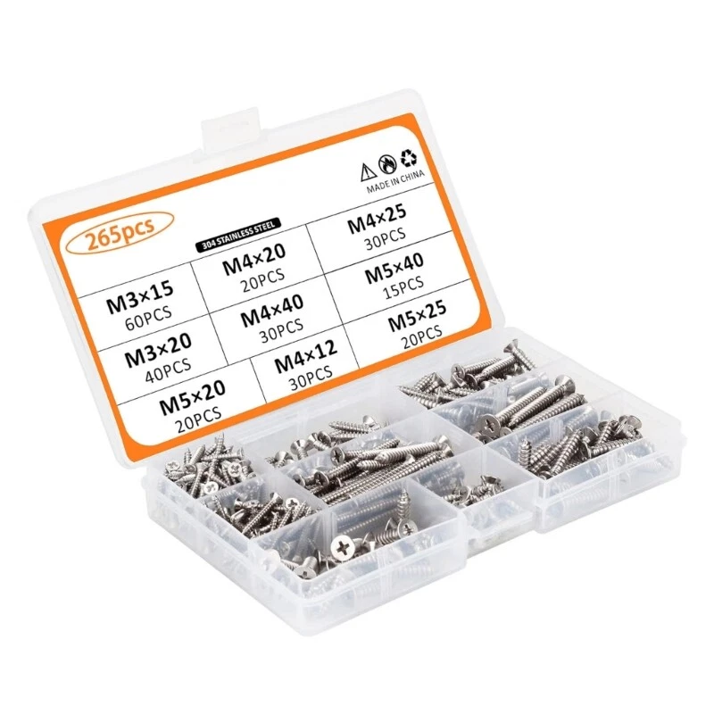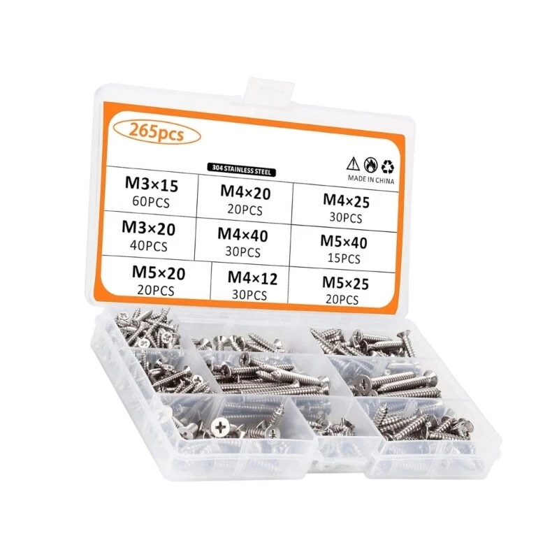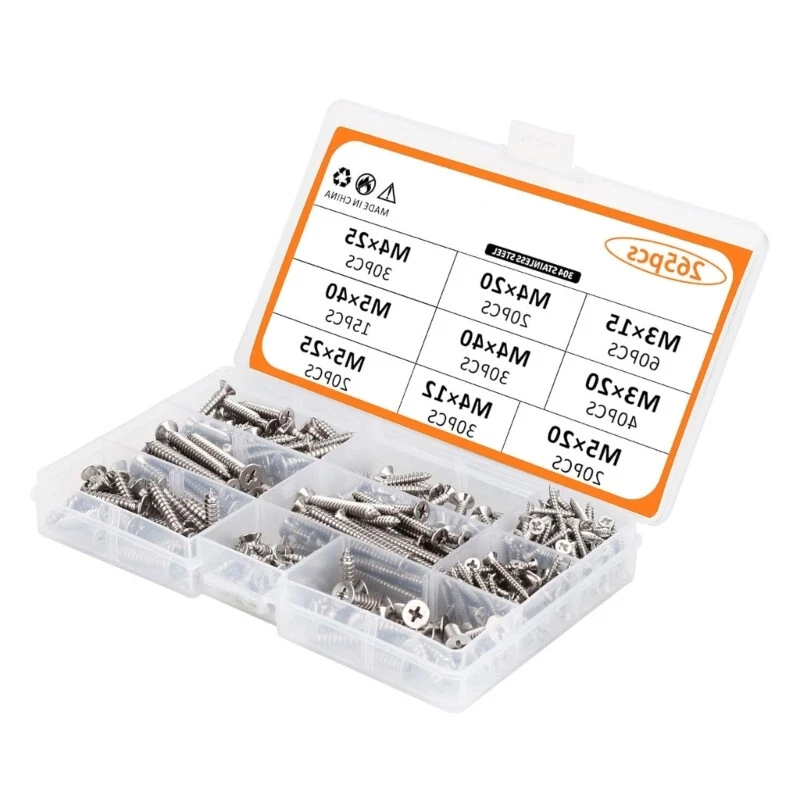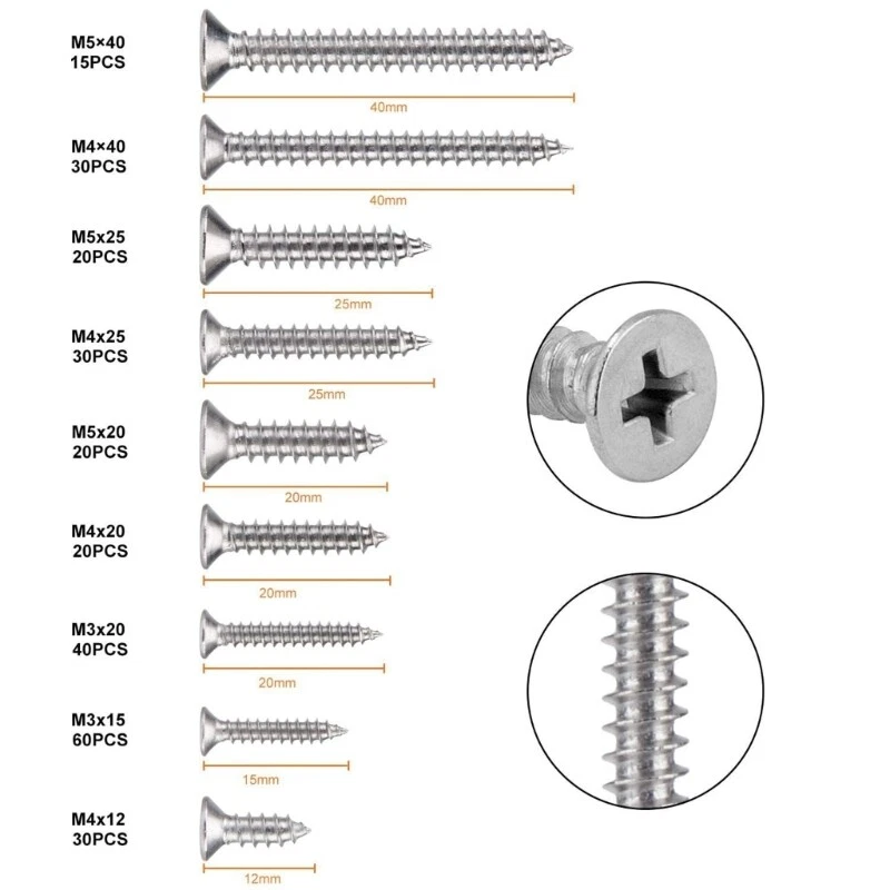 Features: the convenience of this 265pcs self tapping screw set, suitable for variety of applications. Crafted from stainless steel, these screws offer strength and durability in any environment. Whether you're a DIY enthusiasts or a professional contractor, this set is designings for anyone in need of reliable fastening option. From home improvement projects to auto repairs, these self tapping screws suitable for various materials and tasks. Package includes: M5×40 15PCS M4×40 30PCS M5x25 20PCS M4x25 30PCS M5x20 20PCS M4x20 20PCS M3x20 40PCS M3x15 60PCS M4x12 30PCS. Specifications: 304 stainless steel Package Includes: 265pcs Self Tapping Screw note: Please allow 1 to 3cm error due to manual measurement, please make sure you not mind before your bid, Due to the differences between different monitors, the picture may not reflect the actual colorful of the item.