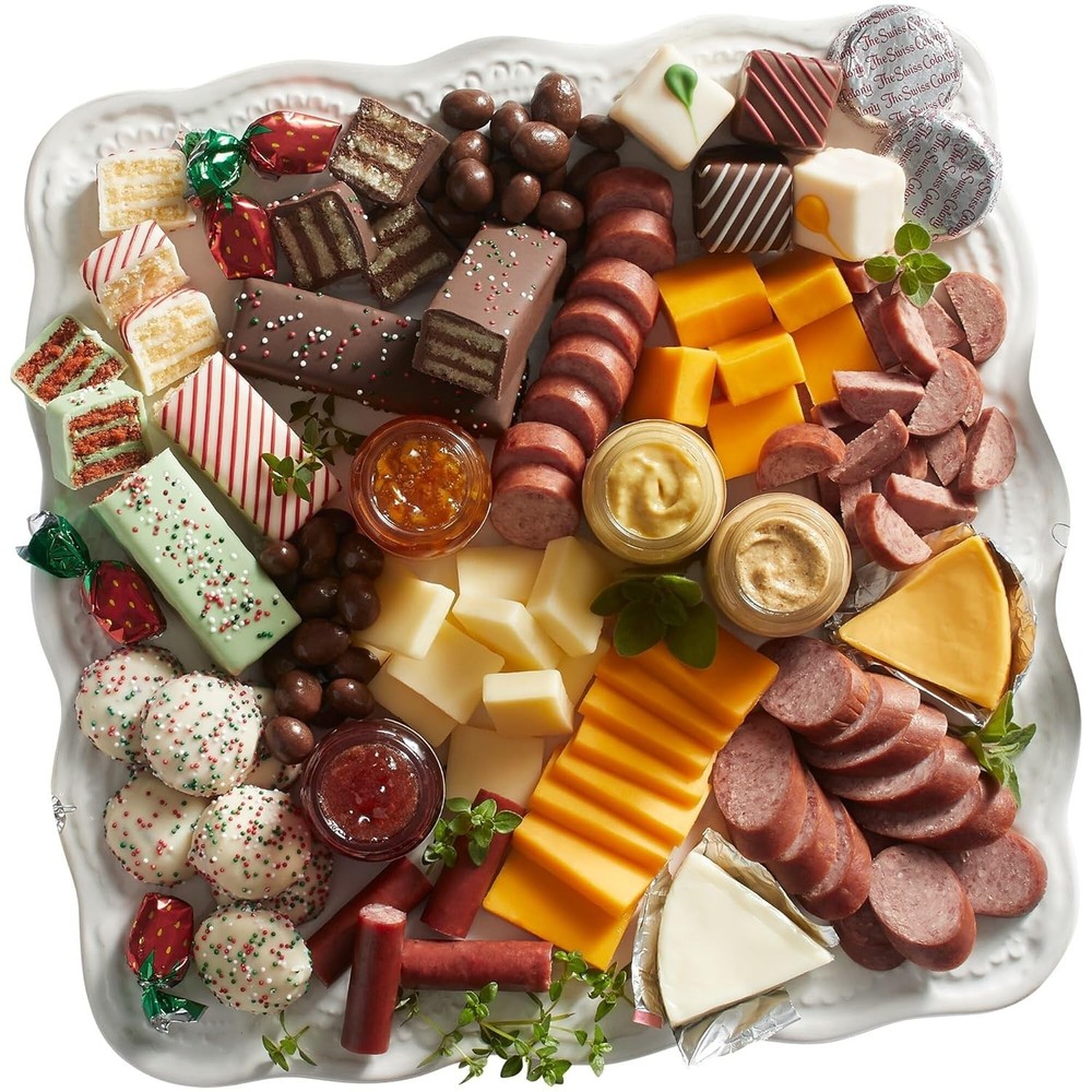 About this item: GOURMET VARIETY IN ONE: Includes 27 snack-sized favorites: savory Summer Sausages, rich cheeses, sweet treats, and more for a complete tasting experience. PREMIUM MEATS & CHEESES: Features Original, Garlic, and Caraway Summer Sausages paired with Cheddar, Brick, and Colby cheeses-perfect for charcuterie boards. SWEET & SAVORY DELIGHTS: Enjoy chocolate-covered peanuts, fruit spreads, Bonbon Cookies, moist cakes, and our signature Petits Fours. READY-TO-GO-PRESENTATION: Beautifully packaged and ready to impress for holidays, thank-you gifts, or any special occasion. PERFECT FOR SHARING: 2 lbs. 1 1/2 oz. of gourmet snacks ideal for gatherings, gifting, or personal indulgence.