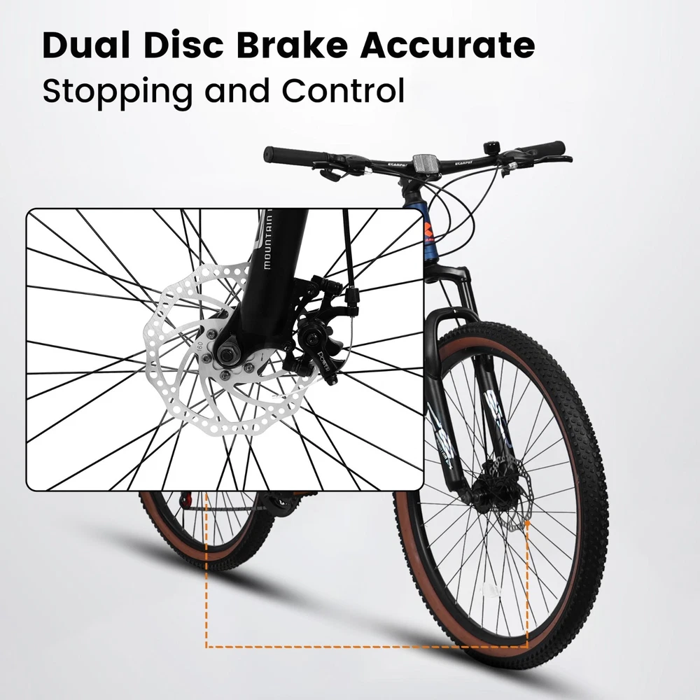ECARPAT A27302 27 inch wheel mountain bike, 21-speed disc brake trigger transmission, aluminum frame unisex mountain bike Specification Shipping Payment Warranty After Service Communication ECARPAT A27302 27 inch wheel mountain bike, 21-speed disc brake trigger transmission, aluminum frame unisex mountain bike Product details 【Aluminum alloy frame】 With an aluminum alloy frame, it has high rigidity and strong shock absorption, and the upgraded interior looks solid and beautiful. Blue and orange with a low-key sense of luxury. 【21-speed Shimano Drivetrain】 Smooth shifting with Shimano's handles ensures smooth shifting during riding. 【Front and rear dual disc brakes】 Dual disc brakes for more precise and tight parking and control. 【QUICK INSTALLATION IN 20 MINUTES】 The Elecony bike arrives 85% assembled and includes free pedals and assembly tools. It is easy enough to put together in 20 minutes. The bike can be fully assembled with ease with the help of tutorial videos, and we are more than happy to help with any problems you may have during the assembly process. Product details: ECARPAT A27302 27 inch wheel mountain bike, 21-speed disc brake trigger transmission, aluminum frame unisex mountain bike Product Type: General Item Main Material: Aluminium Dimensions: Assembled Length (in.): 71.50 Assembled Width (in.): 27.00 Assembled Height (in.): 39.00 Assembled Weight (lbs.): 35.00 Package Length (in.): 56.00 Package Width (in.): 29.00 Package Height (in.): 8.50 Package Weight (lbs.): 42.00 Shipping Our shipping rates include the cost of shipping, handling, packaging and related manpower costs. We offer various modes of shipping. Please choose according to your needs. Combine shipment is available! Items are generally shipped out the next business day after your payment has been verified (Sat. & Sun. excluded). Customers out of America are recommended to contact us for postage cost before placing an order. We are not responsible for undeliverable address. We reserve the right to charge the shipping fee again for returned items due to wrong address. Sorry local pickup is not available. After Service Return Policy Marketplace RMA guidelines must be followed for processing all return requests: Unshipped Items Return Policy:25 % restocking fee will be charged for unshipped item returns without valid reason within 30 days of the original order being processed. Shipped Items Return Policy:For quality or other issues, the Buyer can request a refund or reshipment within 7 days after the end customer has received the item. The reshipment fee will be borne by the Seller. Warranty Policy: Marketplace RMA guidelines must be followed during after-sales services Beginning from the date of delivery, purchased products include a 3 month warranty.In the event of manufacturing defects, the Buyer can request a refund, partial reshipment or full reshipment within the warranty period. Please note that the warranty policy does not apply to the following situations: Damage resulting from negligence, abuse, normal wear and tear or natural disaster and accidents, including but not limited to: burns, cuts, tears abrasions, scratches, watermarks, indentation or pet damage. Damage resulting from unauthorized modifications, except with written approval from Seller. Products not purchased through the Giga Cloud Marketplace. Products with their own individual warranty policy. Please contact us first for after-sales questions. If you need to return the goods, please be sure to return them to our designated warehouse address. Otherwise, we reserve the right to refuse your refund request. 【 Specified return warehouse address: OUXIN, 8167880430, Suit B 1555 S Dupont Ave, Ontario, CA, 91761】 Communication Before bidding, please read the above terms and conditions carefully. The bidding winner will be considered to agree with all terms and conditions listed. We have always been doing our best to provide the best service and reliable products for every customer. Please contact us to resolve the issue before leaving negative feedback.