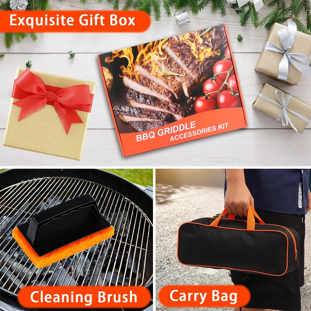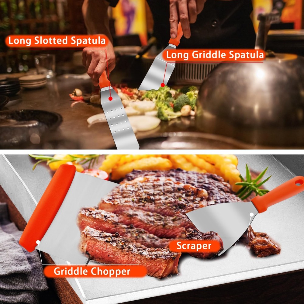 This griddle accessory set is a game-changer for any grilling enthusiast! The 27-piece kit has everything you need—scrapers, shovels, brushes—all designed for easy use and storage. The tools feel sturdy and make cooking on a flat top effortless. Perfect for beginners and pros alike, it simplifies cleanup and expands your cooking options. Highly recommend for anyone who loves outdoor cooking!