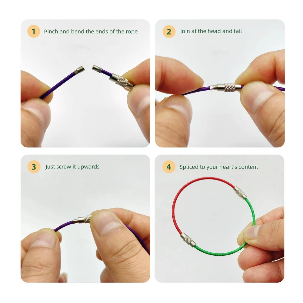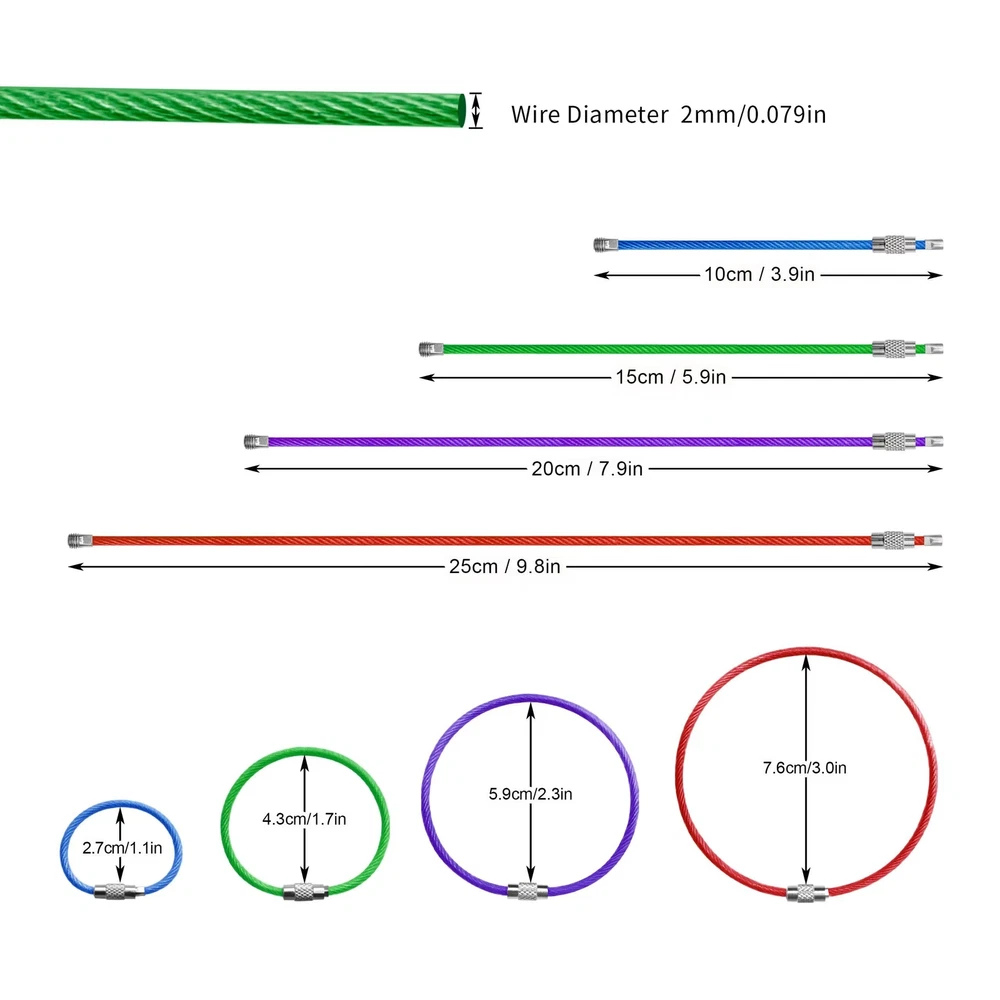 28 pcs Metal Wire Keychains, 2mm Stainless Steel Connecter Key Rings Loops, 4" 6" 7.8" 10" Cable Keyrings Key Chain for Hiking Luggage ID Tags,Key Tags, Kitchen Utensils-7 Colors 【2 MM THICK WIRE LOOP】With a 2mm thick, durable wire interior, nylon covered exterior, and stainless steel connections, this keychain is strong and durable for hanging items and will hold items weighing up to 80 pounds without breaking. 【COMPONENTS INCLUDED】28 wire key rings in 7 colors, each color comes in 4 sizes, 4 inches/10 cm, 6 inches/15 cm, 7.8 inches/20 cm, 10 inches/25 cm, connect multiple cables together to create longer and larger rings for your multiple uses. 【Easy To Use】The versatile threaded barrel key ring is designed with connectors to secure and lock the ends of each wire. Simply tighten or loosen the nuts to easily add or remove items to or from the rope key ring. 【Versatile Uses】Great for hanging key ring fobs, flashlights, pliers, luggage tags, ID tag protectors, etc., cross-stitch thread, cards/reward cards, ID cards, USB flash drives, zipper pulls, kitchen utensils, loose sheets of paper clip rings, charms, or other hooks with holes in them. 【LIGHTWEIGHT & EASY TO CARRY】 Our metal wire keychain , lightweight and small in size, easy to carry when going out, perfect for sports, traveling, hiking and picnic. 【2 MM THICK WIRE LOOP】With a 2mm thick, durable wire interior, nylon covered exterior, and stainless steel connections, this keychain is strong and durable for hanging items and will hold items weighing up to 80 pounds without breaking. 【COMPONENTS INCLUDED】28 wire key rings in 7 colors, each color comes in 4 sizes, 4 inches/10 cm, 6 inches/15 cm, 7.8 inches/20 cm, 10 inches/25 cm, connect multiple cables together to create longer and larger rings for your multiple uses. 【Easy To Use】The versatile threaded barrel key ring is designed with connectors to secure and lock the ends of each wire. Simply tighten or loosen the nuts to easily add or remove items to or from the rope key ring. 【Versatile Uses】Great for hanging key ring fobs, flashlights, pliers, luggage tags, ID tag protectors, etc., cross-stitch thread, cards/reward cards, ID cards, USB flash drives, zipper pulls, kitchen utensils, loose sheets of paper clip rings, charms, or other hooks with holes in them. 【LIGHTWEIGHT & EASY TO CARRY】 Our metal wire keychain , lightweight and small in size, easy to carry when going out, perfect for sports, traveling, hiking and picnic. Shipping We offer FREE shipping on all orders! We ship within Three business days of payment, usually sooner. We use a selection of shipping services such as UPS, FedEx, USPS etc. We only ship to the lower 48 states, no APO/FPO addresses or PO Boxes allowed. Local pickups and combined shipping options are not provided at this time. Return You can return a product for up to 30 days from the date you purchased it. Any product you return must be in the same condition you received it and in the original packaging. Please keep the receipt. Feedback Customer satisfaction is very important to us. If you have any problem with your order, please contact us and we will do our best to make you satisfied. Contact Us If you have any queries, please contact us via ebay. We usually respond within 24 hours on weekdays. Please visit our eBay store to check out other items for sale! Thank you for shopping at our store.