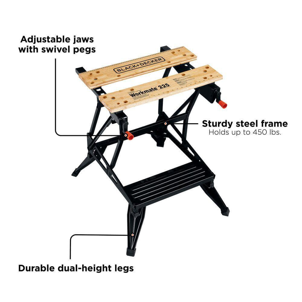 Welcome to our eBay Shop 1 Add to favorite 2 Contact us 28.75 x 25.6 in. Adjustable Folding Portable Sawhorse Vise and Workbench Trusted Seller we have a proven track record over the years. we have 1000s of satisfied customers all over the world. 100% Positive Feedback We have 100% postive feedback score on our eBay profile. 24 Hour Dispatch We dispatch orders every working day at 3 PM. So all the orders received will be dispatched within 24 hours. Fast & Free Delivery We use UPS and royalmail first class to post items to buyers. so that buyer can receive items quickly and on time. Item Description With so many ways to use BLACK plus DECKER's portable project center and vise, this versatile workstation earns a place in every tool collection. Ideal for cutting, sawing, painting, and more applications, it's designed with a heavy-gauge steel construction that supports up to 450 lbs. Adjustable, dual-height legs fold underneath, so you can lower the project center's height to accommodate larger objects, and the adjustable rear jaws with 4 swivel pegs allow you to clamp irregularly shaped objects as well. When you're all done, the project center is collapsible for simple storage in tight spaces or up on the wall. Features: Adjustable Width,Collapsible Material: Multi-Surface Pack Size: 1 Product Weight (lb.): 29.73 lb Tool Storage Product Type: Sawhorse Tools Product Type: Other Weight Capacity (lb.): 45 lb Product Depth (in.): 9 in Product Height (in.): 28.75 in Product Width (in.): 25.6 in Features Lightweight yet sturdy project center supports up to 450 lbs. Great for many projects including clamping, painting and cutting Features dual height adjustment legs and 4-swivel peg clamps About us Customer satisfaction is our highest priority! We encourage you to thoroughly read the items description to ensure it meets your needs before you make a purchase. If you have any questions, please feel free to reach out to us via eBay messages prior to ordering. We strive to provide accurate descriptions and images of our products, but please note that variations in color may occur due to lighting differences and monitor settings. All items are available at the time they are listed, but in the rare event that we cannot fulfill your order due to inventory issues, we will inform you promptly and issue a full refund. Thank you for choosing us for your shopping needs. We value your business! Payment Shipping We provide fast, free shipping. Most items are shipped within 1-3 business days of receiving cleared payment. We ship to the lower 48 contiguous United States only. We do not ship to P.O. Boxes or APOs. sometime we ship from multiple locations Returns We offer a 30 day return/exchange policy for most of our products. if the item was damaged or not as described Disclaimer Were sorry, but we do not honor product exchange requests. If you need to exchange an item received, you will need to go through the normal returns process identified in our returns section and then order the correct item, if it is still available. Orders are processed immediately and dispatched to fulfillment as soon as they are received. For this reason, we are typically unable to honor cancellation requests. If you need to cancel the transaction, please contact us as soon as possible and we will attempt to cancel the order. If the order has gone too far through the fulfillment process, we will be unable to cancel. In that event, you would need to wait until you receive the item and go through the normal returns process as mentioned in the returns section of our policies. Get in Touch If you have any question regarding our products. Feel free to contact us anytime using eBay messaging service. We will get back to you at our earliest. Copyright ©2023, All Rights Reserved. Listed by Sku Fetch