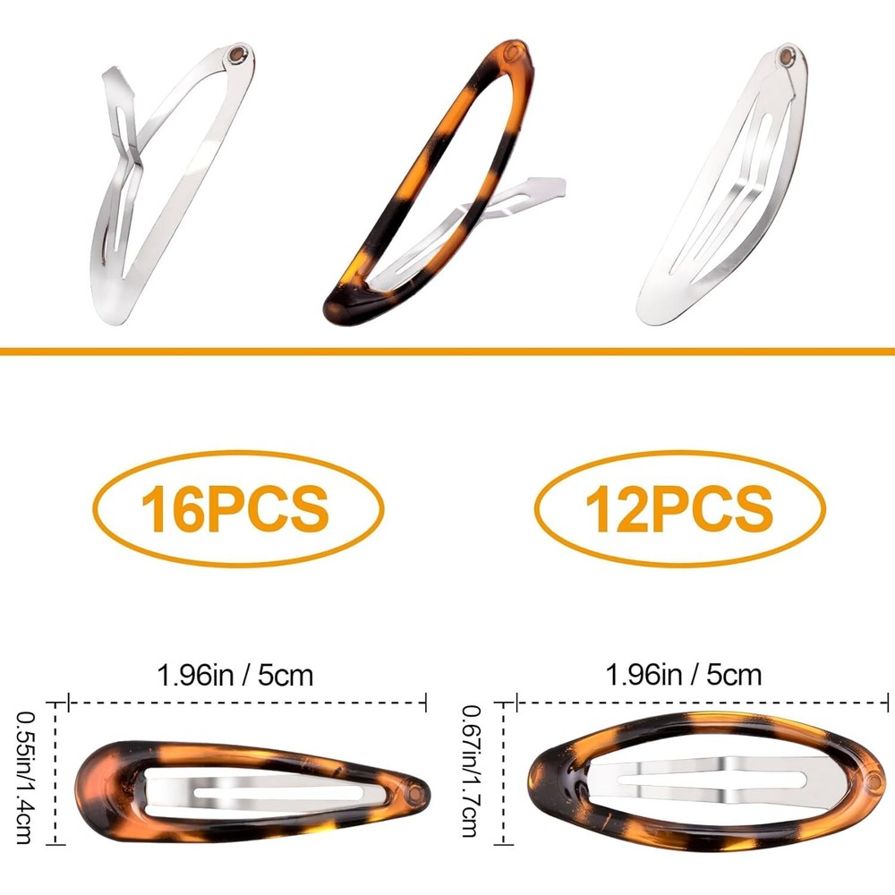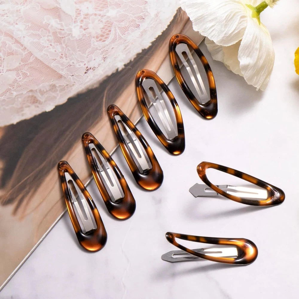 28pcs 2inch Oval Snap Hair Clips Vintage Tortoise Hair Barrettes Metal Epoxy Wedding Prom Accessories for Women About this item Packages include: You will get 28pcs snap hair clip in 2 shapes, oval & teardrop. The sufficient quantity and different shapes can meet your diverse hair styling needs, and you can also share the snap hair clip with your family members. Premium Material: This snap hair barrettes are made of high-quality alloy and plastic, non-slip and sturdy, flexible and comfortable to wear. You can use these vintage hair clips to match your makeup and clothing easily. Perfect gift: You can give this small snap hair clips for women as gift to your mother, daughter, wife, sister, girlfriend, and female friend on special moments, such as birthday, party, graduation, Homecoming, Easter, Christmas, Saint Patrick's Day, Carnival Day, Valentine's Day, Mother's Day, Thanksgiving Day, Halloween and so on, showing your love and concern for them and enhancing your relationships. Suitable Hairstyles: These tortoise bobby pins are suitable for long hair, short hair, curly hair, straight hair, thin hair, thick hair, updo, half-up. This vintage hair accessories is designed to hold your hair securely in place, whether you're going for a casual or elegant look. Wide Application: This hair accessories is suitable for face washing, Easter eggs, birthday, party, work, school, sports, banquet, ceremony, engagement, traveling, wedding, hang out, club activity, performance and so on, perfect for woman and girl.