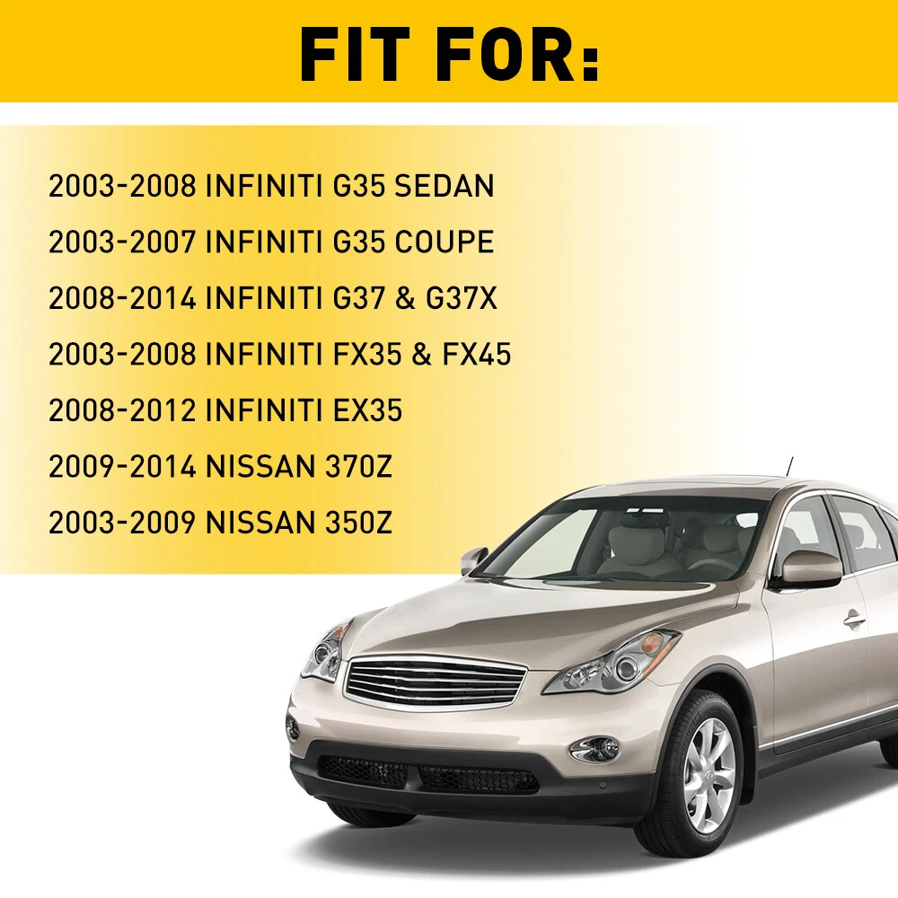 Fit For: 2003-2008 Infiniti G35 Sedan 2003-2007 Infiniti G35 Coupe 2008-2014 Infiniti G37 & G37X 2003-2008 Infiniti FX35 & FX45 2008-2012 Infiniti EX35 2009-2014 Nissan 370Z 2003-2009 Nissan 350Z Specifications: Bolts: Material: Metal Color: Black Male Thread: M6-1.00 Size: M6-1.00 x 22mm Washer Diameter: 16.8mm / 0.66" Hex Head Diameter: 10mm / 0.39" U-Nuts: Material: Metal Color: Black Feamle Thread: M6 Total Size: 24.5mm x 14.5mm x 12mm / 0.96" x 0.57" x 0.47" (L*W*H) 28/56x Car Engine Splash Shield Body Bolts Screw Nut Fender Bumper Clip Rivet M Fit For: 2003-2008 Infiniti G35 Sedan 2003-2007 Infiniti G35 Coupe 2008-2014 Infiniti G37 & G37X 2003-2008 Infiniti FX35 & FX45 2008-2012 Infiniti EX35 2009-2014 Nissan 370Z 2003-2009 Nissan 350Z Specifications: Bolts: Material: Metal Color: Black Male Thread: M6-1.00 Size: M6-1.00 x 22mm Washer Diameter: 16.8mm / 0.66" Hex Head Diameter: 10mm / 0.39" U-Nuts: Material: Metal Color: Black Feamle Thread: M6 Total Size: 24.5mm x 14.5mm x 12mm / 0.96" x 0.57" x 0.47" (L*W*H) Plastic Push Clips: Material: Plastic Color: Black Head Diameter: 15mm / 0.6" Stem Length: 20mm / 0.8" Fit Into 8mm / 0.31" Hole Placement on vehicle:Used widely for car fender, bumper, door, side skirt or other car surface Features: *Superior material Adopt to excellent metal and plastic materials to prevent it from corrosion and cracking. *Function These clips are suitable for firmly holding anything within a fit diameter hole. *Easy installation Simple installation with direct replacement, other modification is not required. *Please Note: Communication is the best way to solve the problem. If you have any problems after purchasing, please contact us via eBay Message, before opening return or case. Packaging include: Body Bolts with Built-in Fender Washer*15 Extruded U-nuts*10 Plastic Push Clips*3 ABOUT US 28/56x Car Engine Splash Shield Body Bolts Screw Nut Fender Bumper Clip Rivet M Fit For: 2003-2008 Infiniti G35 Sedan 2003-2007 Infiniti G35 Coupe 2008-2014 Infiniti G37 & G37X 2003-2008 Infiniti FX35 & FX45 2008-2012 Infiniti EX35 2009-2014 Nissan 370Z 2003-2009 Nissan 350Z Specifications: Bolts: Material: Metal Color: Black Male Thread: M6-1.00 Size: M6-1.00 x 22mm Washer Diameter: 16.8mm / 0.66" Hex Head Diameter: 10mm / 0.39" U-Nuts: Material: Metal Color: Black Feamle Thread: M6 Total Size: 24.5mm x 14.5mm x 12mm / 0.96" x 0.57" x 0.47" (L*W*H) Plastic Push Clips: Material: Plastic Color: Black Head Diameter: 15mm / 0.6" Stem Length: 20mm / 0.8" Fit Into 8mm / 0.31" Hole Placement on vehicle:Used widely for car fender, bumper, door, side skirt or other car surface Features: *Superior material Adopt to excellent metal and plastic materials to prevent it from corrosion and cracking. *Function These clips are suitable for firmly holding anything within a fit diameter hole. *Easy installation Simple installation with direct replacement, other modification is not required. *Please Note: Communication is the best way to solve the problem. If you have any problems after purchasing, please contact us via eBay Message, before opening return or case. Packaging include: Body Bolts with Built-in Fender Washer*15 Extruded U-nuts*10 Plastic Push Clips*3 FAQ Shipping Returns Contact Us Payment Why swith to LED? LEDs not only give your vehicle a clean, modern look but, with proper use, will outlast any halogen bulb and HID bulb! Low energy draw, high lumen output, and instant on/off LED technology out shines stock bulbs in every way. Which bulbs are used in my vehicle? Check Sylvania automotive lamp replacemnt guide , you can select the year, make, and model of your vehicle, then select the application you want to replace or upgrade from stock. What does CAN Bus mean? CAN Bus means Controller Area Network Bus. This system monitors your vehicle and reports operating conditions. CAN Bus systems are commonly found in European vehicles such as BMW, Audi, Mercedes, Volkswagen, Porsche, and in many American vehicles. While most late model American vehicles have CAN Bus systems, it is always good to check with your vehicle dealer to see which system your vehicle has before purchasing electrical products. When do you need Warning Canceller? Some vehicles with cmplex internal computers(such as Audi,BMW,Jaguar,Mercedes,etc.) might report on-dash errors or flickering on the headlights. The warning canceller fixes the dashboard warning and flickering effect. Bulb Out Dashboard Error: On some vehicles, the dashboard will report as if you have a headlight bulb missing or burnt. It does not affect the headlights functioning, but the light on-dash will be on. The warning canceller fixes the issue. Flickering Issue: This happens when your vehicle does not recognize the new headlights installed. When turning the headlights on, the vehicle's computer does not understand the signal back from the headlights hence thinking they are still off. This triggers the headlight flickering effect. The warning canceller solves this issue. LED Advantages: Very low and efficient energy consumption than halogen bulbs & HID Bulbs Compared with HID bulbs, LED bulbs Light up instantly, no warm up period Low voltage protection, high precision constant current driver chip Longer lifespan than HID and halogen bulbs Light can be controlled easily in color and intensity Easy to install a LED headlight conversion kit (1) We will ship your item(s) within 24 hours. (2) We ship this item to US only via USPS first class mail. It usually takes 3-6 working days to deliver. How Long Will It Take to Receive My Refund? If you have emailed us for a refund ,once we have approved it ,after 60 days your money will be refunded. The estimated time for the refund to appear in your account is based on the payment method you use. Paypal is the only supported in NIGHTEYE Store. Please notify us within 30 days after you've received your purchased item. All return requests must be submitted through your eBay account. NOTE: Buyers pay for the retu