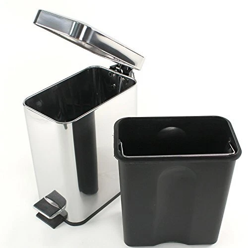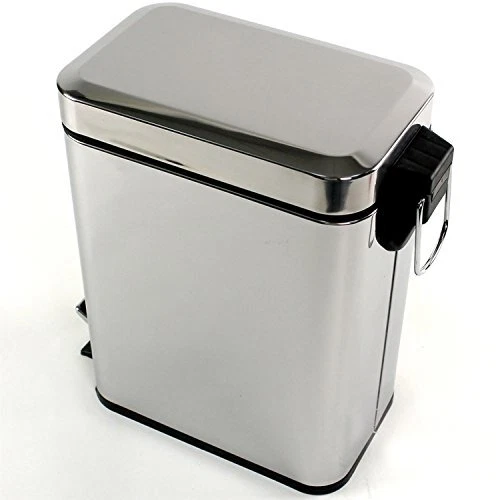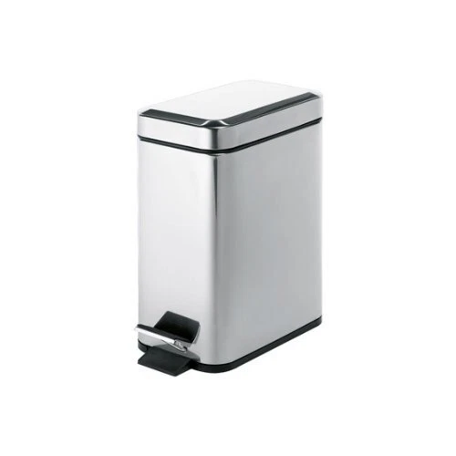 Modern, rectangular waste bin with pedal and cover. Bathroom wastebasket, cover, and pedal are made out of stainless steel in a polished Chrome finish. Stylish step can for the bathroom. Made in Italy by . Waste container with pedal and cover Rectangular and modern design Made out of stainless steel in a polished Chrome finish Color: Chrome