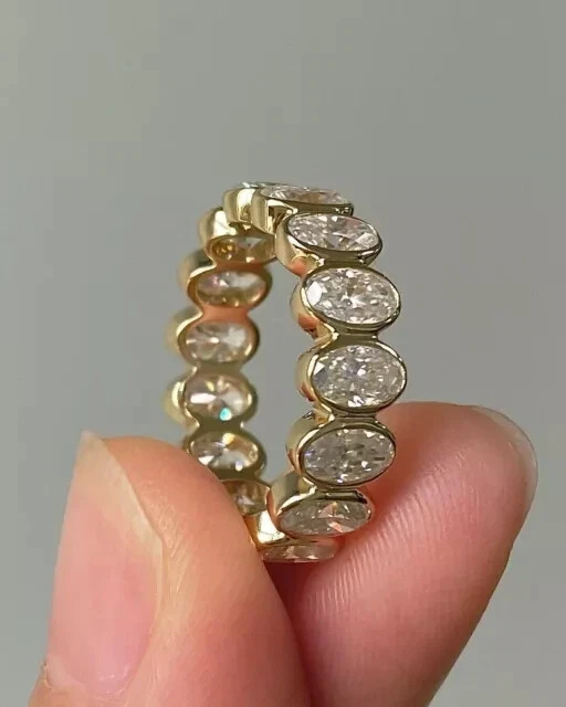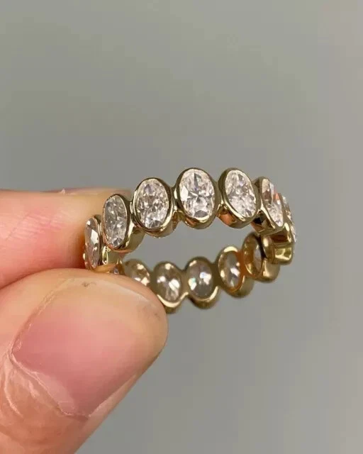 2CT Oval Cut Simulated Diamond Full Eternity Band Ring 14K Yellow Gold Plated
