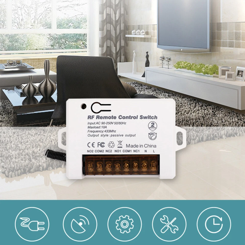 You may also like 8 IN 1 Metal Craft Chinese Ring Puzzle IQ Brain Teaser Kid Adult Educational Toy 10.99 USD 4Pack Durable Fuel Line Tube Hose For Husqvarna 61 66 162 181 266 268 272 281 9.99 USD Pneumatic Foot Pedal Valve FV-320 Momentary 3 Way 2 Position 1/4"PT Threaded 23.99 USD 5V 4-Pin Sunglasses USB Charger Charging Cable For Bose Frames Alto/Rondo/Tenor 11.99 USD 10x Hall Effect Joystick 3D Analog Stick Module For PS5 Dualsense Controller 17.59 USD 3.69 USD 10Pack Plastic+HSS 360° Deburring Tool Steel HSS Rotary Deburr Trimming Handle 10.69 USD Product Description Features: 1.Big Holes, Easy To Connect With Wires 2.Wide Voltage, For Lights / Motors / Garage / Fan / Diy 3.300m Remote Range, 433mhz Stable Signal Specifications: Working Voltage: AC90~250V Rf Frequency: 433mhz Working Temperature: -30℃ - +70℃ Receiving Sensitivity: -117dbm Support Encoding: Leaning Code Receiving Range: Open Space Is 300 Meters Batteries: 1* 12V 27A Battery(Battery Included) Remote Operating Mode: Momentary Mode / Toggle Mode / Latched Mode Load Power: 500W Working Modes: You Can Set Up In 3 Modes: Momentary Mode,Toggle Mode And Latched Mode. Momentary Mode: Press And Hold A Button, 1st Relay Will Work; Release A Button,1st Relay Will Stop. Press And Hold B Button, 2nd Relay Will Work; Release B Button, 2nd Relay Will Stop. Toggle Mode: Press A Button, 1st Relay Will Work; Press A Button Again, 1st Relay Will Stop. Press B Button, 2nd Relay Will Work; Press B Button Again, 2nd Relay Will Stop. Latched Mode: Press A Button, 1st Relay Will Work; Press B Button, 1st Relay Will Stop, 2nd Relay Will Work. Press A Button Again, 2nd Relay Will Stop, 1st Relay Will Work Set Up: Momentary Mode: Press Learning Button Once, Press A Button Once, Succeed. Toggle Mode: Press Learning Button Twice, Press A Button Once, Succeed. Latched Mode: Press Learning Button 3times, Press A Button Once, Succeed. Clean Data: Press Learning Button 8times, The Data Will Be Cleaned. All Remotes Cannot Control This Receiver. Package Included: 1 X Receiver 1 X Remote Control Shipping Returns Contact Us Payment 1. Items sent from US warehouse. 2. Receiving time = Processing time + Shipping time. 3. Processing Time: Around 1-2 business Days. 4. Shipping Time: 3-5 business day. It may have a little delay during some holiday (such as Christmas), any problem, please feel free to contact. Always believe we can figure things out with communication, if it comes to return, the pacakge must be intact and the same as you receive. If you have any questions, please feel free to email our service specialists 24 Hours a Day, 7 Days a Week. We will reply you ASAP. Return/refund is accepted within 30 days after the buyer receives the item. NO exchange will be accepted after 30 days from the date when the item is received. Please contact us first before returning your product!!! If you have any questions, our Customer Service staffs welcome you to email us. We strive to answer all questions and resolve any problems as quickly as possible. We care about our valued customers, and will always try to help you. So if you have any problems, You can contact us 7*24, we will reply at the first time. We accept all verified payments from ebay. Orders will be shipped after receiving cleared payment. Shipping 1. Items sent from US warehouse. 2. Receiving time = Processing time + Shipping time. 3. Processing Time: Around 1-2 business Days. 4. Shipping Time: 3-5 business day. It may have a little delay during some holiday (such as Christmas), any problem, please feel free to contact. Returns Always believe we can figure things out with communication, if it comes to return, the pacakge must be intact and the same as you receive. If you have any questions, please feel free to email our service specialists 24 Hours a Day, 7 Days a Week. We will reply you ASAP. Return/refund is accepted within 30 days after the buyer receives the item. NO exchange will be accepted after 30 days from the date when the item is received. Please contact us first before returning your product!!! Contact Us If you have any questions, our Customer Service staffs welcome you to email us. We strive to answer all questions and resolve any problems as quickly as possible. We care about our valued customers, and will always try to help you. So if you have any problems, You can contact us 7*24, we will reply at the first time. Payment We accept all verified payments from ebay. Orders will be shipped after receiving cleared payment. 5mm Wrench T-Handle Hex Allen Key Screws Screwdriver Driver Tools 10.69 USD 6x Belt Clip Hook Screw Kit For Dewalt 20V Drill Impact Driver Flashlight Tools 12.99 USD 1/400 British Titanic Cruise Paper Model Ship Model Craft Model Unassembled Kit 19.99 USD 6pcs 1/18 Plastic Special Force Action Figures 10cm Army Men Soldier Playset 10.99 USD Flex Edge Beater Paddle For Kitchenaid Bowl-lift Stand Mixer 6 Quart Accessories 19.99 USD Mini Digital LC100-A LCD High Precision Inductance Capacitance L/C Meter Tester 24.99 USD New 5* Washable Wet Mopping Pads Reusable Wet Pads For iRobot Braava Jet M6 18.99 USD Laser Distance Sensor LDS Lidar Motor For Roborock S50 S51 S55 Vacuum Cleaner 14.99 USD Oil Drive Pump Filter Pipe Kit For CHINESE CHAINSAW 4500 5800 45CC 52CC 58CC 10.99 USD 5pcs 6cm Metal Cutter Drill Bits Rotary Bits Rasp For Steel Grinding Carving E 12.69 USD 1/1250 HMT OLYMPIC Ocean Boat Diecast Cruise Ship Model Craft Souvenir Scene 33.99 USD 138mm Wing Sung 601 Steel Cap Vacumatic Fountain Pen F Nib 0.5mm Ink Pen D 22.99 USD Phone Screen Magnifier Stereoscopic DIY Retro Mini Television Magnifying Tool 15.39 USD 12x Fuel Tank Vent For Stihl 021 023 025 MS250 028 029 MS290 038 1117 350 5800 13.39 USD New ECHO SRM-225 GT-225 PAS-225 TRIMMER RECOIL REWIND PULL STARTER A05100131 16.99 USD 6* Replacement Side Brushes For Shark ION Robot S87 R85 RV850 RV750 RV725 RV700 10.18 USD 2PCS 5in Sponge Foam Cushion Orbital Sander Interface Buffer Pad Accessories 11.99 USD 4*D