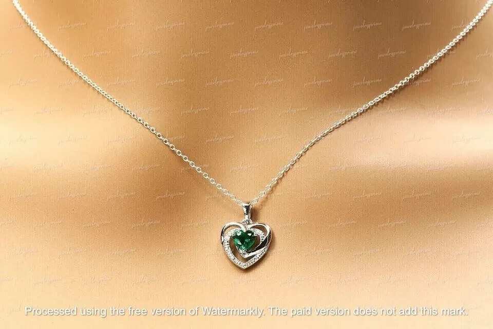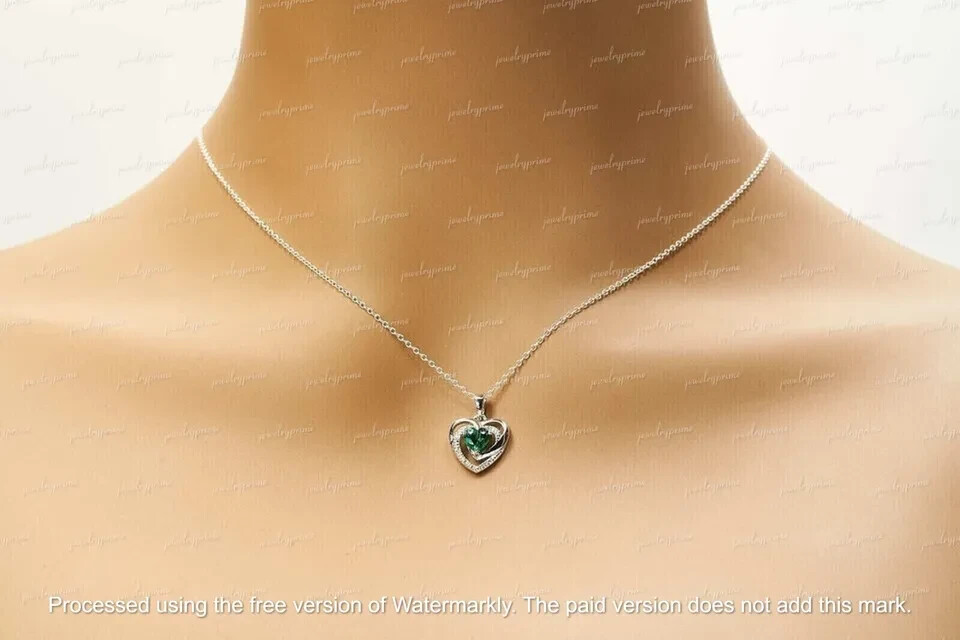 $ 66.532Ct Heart Shape Lab-Created Fire Opal Pendant Necklace 14k White Gold Finish