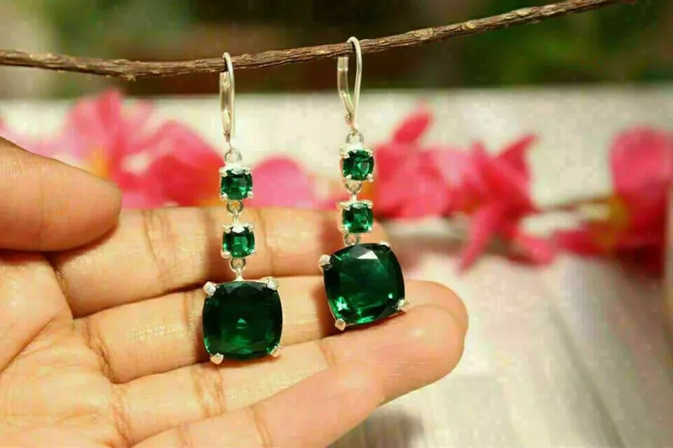 2Ct Cushion Lab-Created Green Emerald Drop/Dangle Earring 14KYellow Gold Plated Customization: Want to add your personal touch to this piece? Contact us and we will create one just for you. Most customization requests include: 1) Ring Resizing 2) Redesign 3) Metal Change (Silver/10K Gold / 14K Gold /18K Gold) 4) Metal Color Change (White/Yellow/Rose/Black) 5) Color Stones (White Topaz, Pink Sapphire, etc) 6) Engraving (Name or any message - no of characters subject to size of jewelry) 7) Anything under the sun that catches your fancy, we will give it a try :) Payment: We accept payment via PayPal only. You can also pay using your credit card, via paypal, by using paypal as a guest. Payment is required within 3 days of the sale of an item. Shipping: International shipments are usually delivered within 2 to 6 weeks, depending on the time taken to clear customs. We are not responsible for any delays due to customs. Please note that all countries charge a duty on imported goods. A customs clearing charge is also imposed in many countries. We are not responsible for the amount of duty or any other related charges. Terms & Sale: We want to ensure that you are completely satisfied with your purchase. If not, then please let us know before leaving any feedback and allow us to work with you to completely resolve any issues that you might be facing. You can return the item for a full refund LESS shipping, within 14 days of item(s) receipt date. There is no restocking fee. 100% Satisfaction Guaranteed. All returns must reach us within 14 days after the item was delivered to you the item must be in the original condition and with the original tags attached. Contact Us: You can contact us by clicking on 'ask seller a question'