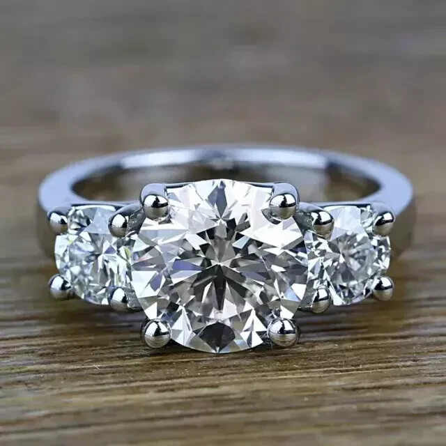 Elevate your jewelry collection with the exquisite 2Ct Round Cut Lab Created Diamond Women's Three Stone Ring, impeccably crafted in 14k White Gold Plated sterling silver. The ring features a stunning trio of white diamonds, with a round main stone complemented by two side stones that add a touch of elegance and flair. With a variety of ring sizes available, this piece can be tailored to fit any preference. The main stone's flawless clarity and excellent cut grade ensure that it sparkles with unmatched brilliance, while the floral pattern and three-stone setting style offer a sophisticated design. Whether it's for a birthday, anniversary, or special occasion, this ring is a timeless choice that represents love and luxury.