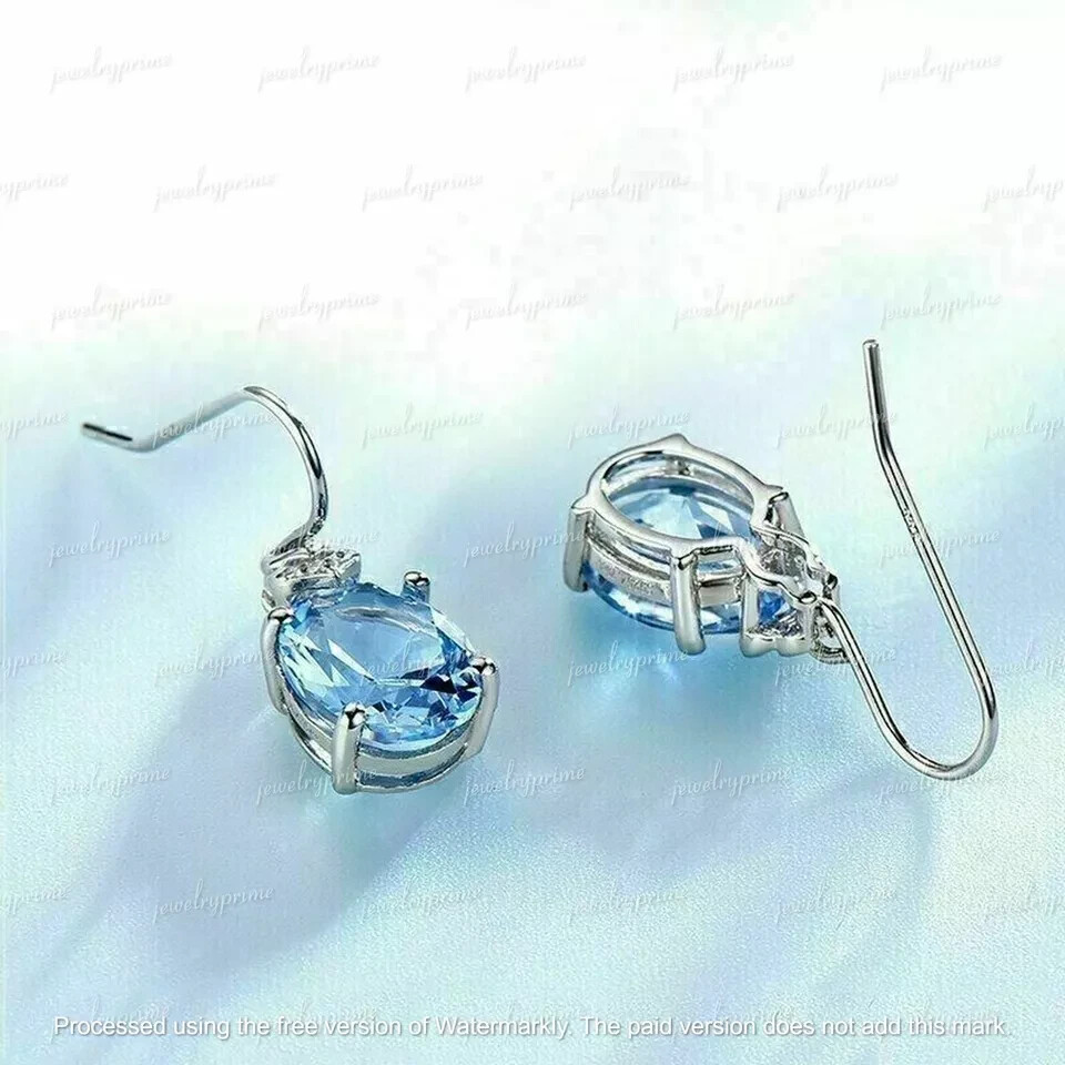 2Ct Oval Blue Topaz Dangle Earrings in 925 Sterling Silver for Women