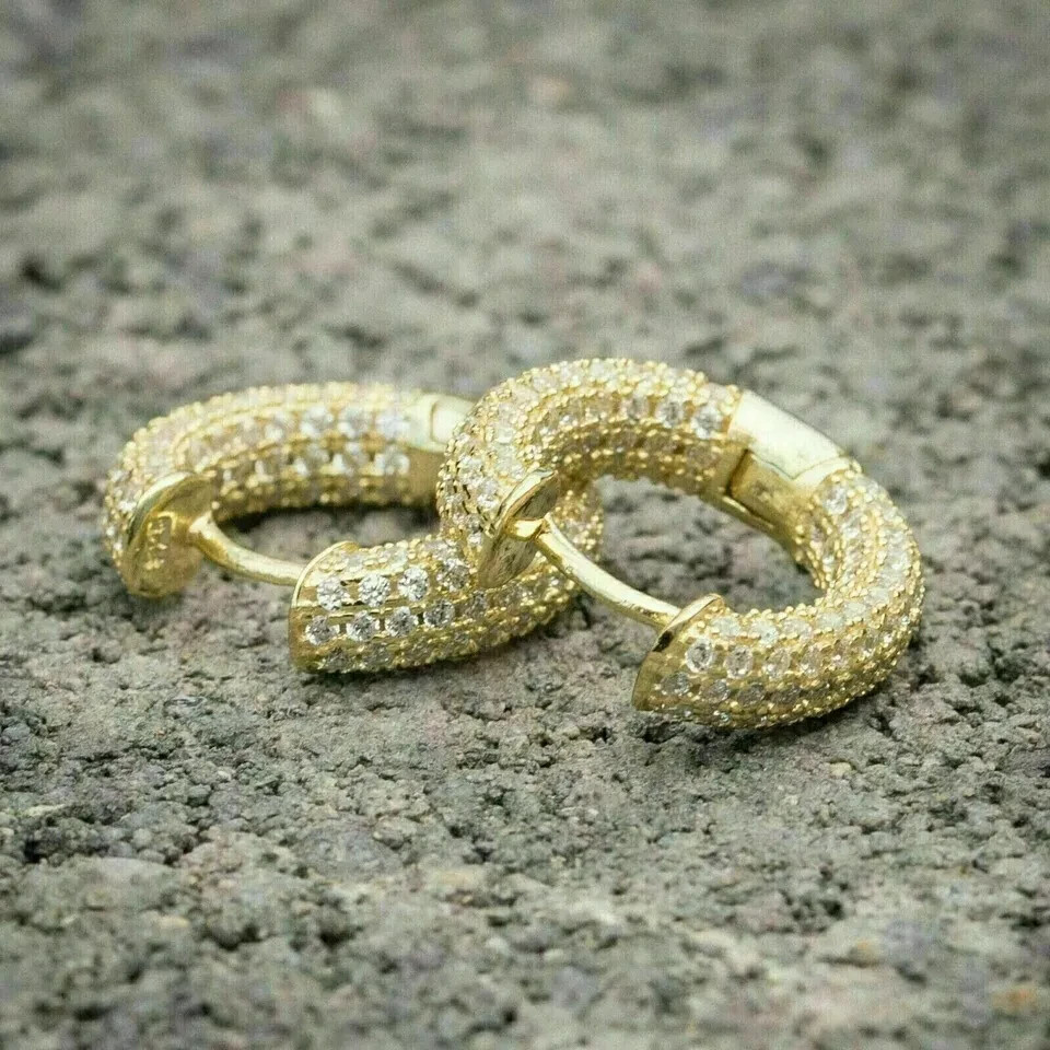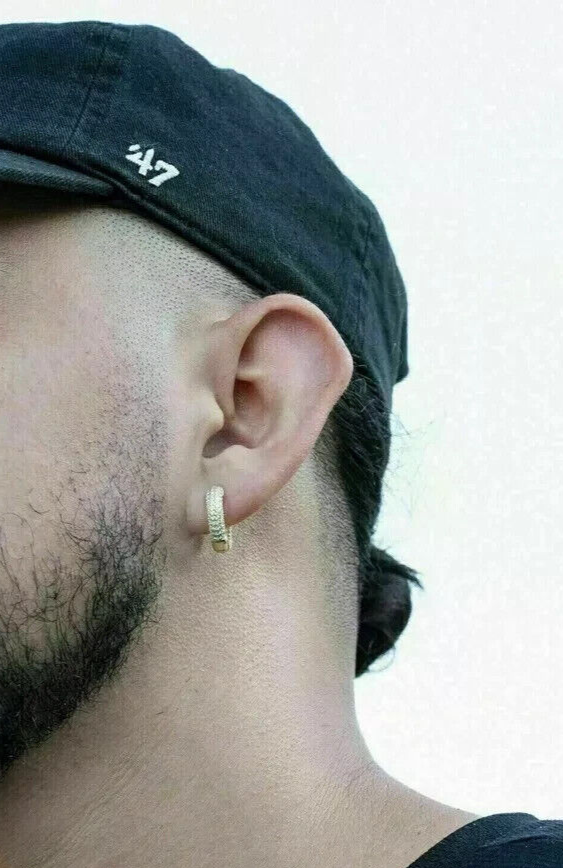 2Ct Round Cut Moissanite 14K Gold Plated Men's Huggie Hoop Earrings