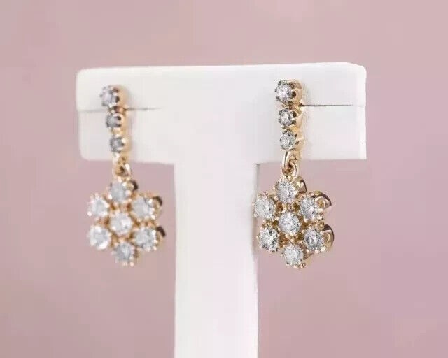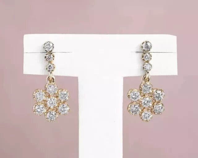 2Ct Round Cut Simulated Diamond Drop Earrings in 14k Gold Plated