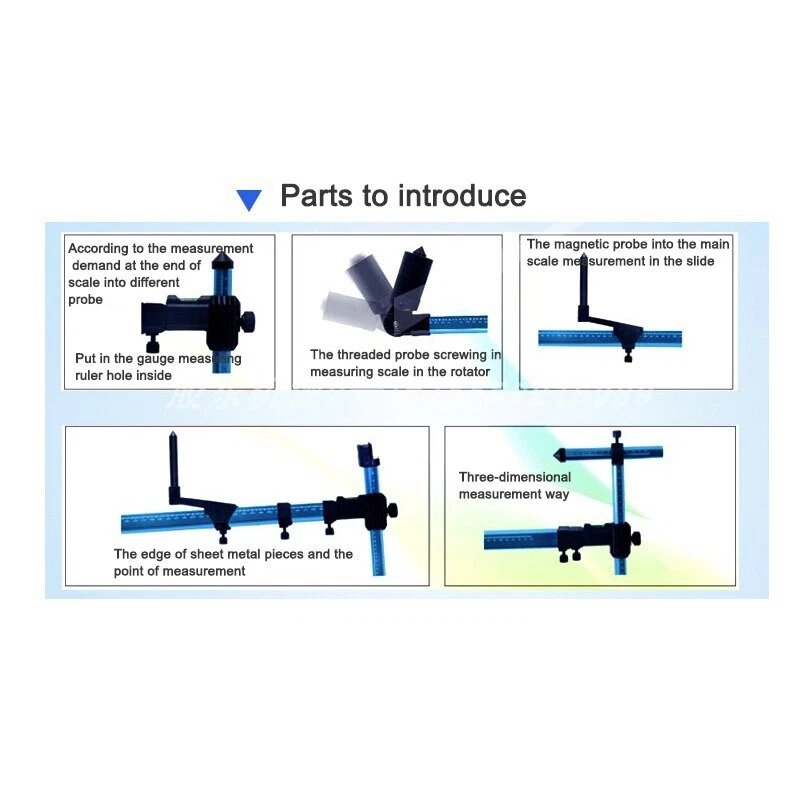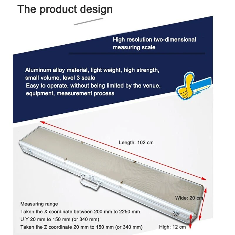 High Precision 2D Aluminum Alloy Measuring Instrument Body Collision Chassis Repair Inspection System Measuring Tool Parts Kit Item Description Name: Instrument parts 2 D measuring scale The scope/parameters X coordinates: 200-2250 (mm) Y: 200-150-340 (mm) Z coordinates: 200-150-340 (mm) Measurement error | : < 1 mm Product size: 1000 * 180 * 120 (mm) Net weight: 3.5 KG
