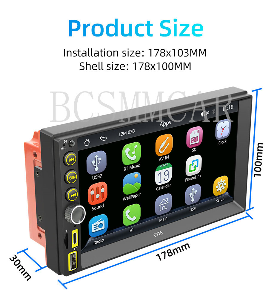Store Categories Store Categories Other Details 7in Double 2 DIN HD Car Stereo Radio Bluetooth Touch Screen USB Type-c FM MP5 Player Wireless Carplay With 4LED Rearview Camera Note:Not is universal , Please check with your car panel's size !!! Product introduction: *Screen size: 7-inch touch screen *Screen resolution: 1024 * 600 *Software solution: F133 *Radio frequency: FM 87.5-108.0MHz AM 522~1620KHz *Bluetooth version: 5.1 version *Installation size: 178x103MM *Net weight of the whole machine: 0.82KG *Playback mode: USB drive, AUX, Bluetooth, card insertion playback *Working temperature: -10~60 ℃ *Working voltage: 12-14.4V *Output power: 60Wx4 *Audio format: MP3/WMA/AAC/APE/OGG/M4A/RA/WAV *Format: H263/H264/H265/DIVX HD (720P 1080I1080P) AVI/FLV/MKV/RMVB/MPEG/MP4 /WMV9/VC/ASF/TS/QT *Language parameters: English, Chinese, Spanish, Portuguese, Russian, German, French, Polish, Türkiye, Arabic, Hebrew, Italian, Czech, Japanese *Accessories: 1. Host 2. Manual 3. Power cord 4 21 key silicone remote control 5. Installation bracket 6. Screws 7. USB extension cable 8. Pepper antenna 9. 4LED Rear Camera Shipping Policy Payment Method Returns Policy Shipping Policy Payment Method Returns Policy Copyright©2017 DataCaciques Home Payment Shipping About us Contact us Store Categories Store Categories Other Details 7in Double 2 DIN HD Car Stereo Radio Bluetooth Touch Screen USB Type-c FM MP5 Player Wireless Carplay With 4LED Rearview Camera Note:Not is universal , Please check with your car panel's size !!! Product introduction: *Screen size: 7-inch touch screen *Screen resolution: 1024 * 600 *Software solution: F133 *Radio frequency: FM 87.5-108.0MHz AM 522~1620KHz *Bluetooth version: 5.1 version *Installation size: 178x103MM *Net weight of the whole machine: 0.82KG *Playback mode: USB drive, AUX, Bluetooth, card insertion playback *Working temperature: -10~60 ℃ *Working voltage: 12-14.4V *Output power: 60Wx4 *Audio format: MP3/WMA/AAC/APE/OGG/M4A/RA/WAV *Format: H263/H264/H265/DIVX HD (720P 1080I1080P) AVI/FLV/MKV/RMVB/MPEG/MP4 /WMV9/VC/ASF/TS/QT *Language parameters: English, Chinese, Spanish, Portuguese, Russian, German, French, Polish, Türkiye, Arabic, Hebrew, Italian, Czech, Japanese *Accessories: 1. Host 2. Manual 3. Power cord 4 21 key silicone remote control 5. Installation bracket 6. Screws 7. USB extension cable 8. Pepper antenna 9. 4LED Rear Camera Shipping Policy Payment Method Returns Policy Contact Us Shipping Policy All items will be checked before packing. All items are new and of high quality. Item will be shipped within 1 business days upon receipt of payment, excluding weekends and public holidays. If to USA,we will ship your order by USPS,it will take about 8-12 working days to you,and you can track it on line. If to other country,we will ship your order by China Post or Singapore Registered Air Mail,it will take about 14-21 working days to you,you aslo can track it on line. Delivery time is about 14-28 business days and it may take up to 8 weeks. Payment Method We accept payment by PayPal only ! Payment should be completed within 5 days after buyer places the order,or else an unpaid case will be opened in order to cancel the transaction. If you can not pay in time, please contact us. e-check from PayPal will only be processed once the payment clears. All of the items will be shipped to buyer's EBAY address,please confirm your address on Ebay before you buy.Your order will be usually shipped out the same or next business days once the payment is made and cleared. Returns Policy 30-day Warranty with Exchange for defective, malfunctioned, incorrect or parts-missing items. Please notify us and return the item with all parts and accessories packed and marked "FOR EXCHANGE" within 14 days of receipt. If defective, malfunctioned or parts-missing items are no longer available, a refund may be issued. All returning postage costs will be the responsibility of the buyers under all circumstances. Contact Us If you encounter any problems about anything, please feel free to contact us and we will do our best to assist you solve the issue. If you are not satisfied in anyway, please feel free to let us know and give us a second chance to correct it before you decide to leave any neutral or negative feedback. Please contact us through eBay link if you have any questions. We will reply you within 24- 48 hours. Please check you spam mail if no response for 48 hours. Home Payment Shipping BCSMMCAR Contact us