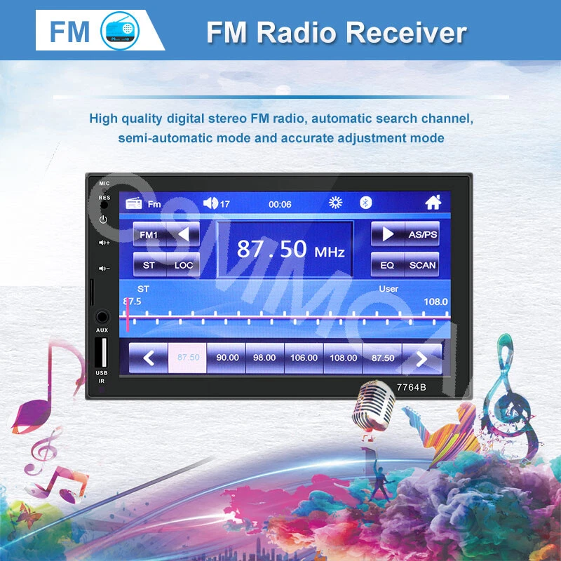 7 Inch Double 2 DIN Stereo Radio Car MP5 Player Bluetooth Touch Screen Audio Feature: Main product function:Mirror Link+ capacitive touch screen + aux Product parameters: Product model: SWM-7764B Type: Touch MP5 Decoding chip: quanzhi c2005 System: WINCE Screen size: 7 in Net product weight: about 500g 1024 * 600 screen resolution Mobile phone interconnect: bidirectional interconnect from android and iPhone version below 8P support Radio chip: QN8035 Amplifier chip: TDA7388 Audio frequency (band): fm 87.5 m-108 m (fm1 / fm2 / fm3) Bluetooth: Bluetooth 4.0 version SD card slot: TF memory card Standby time: support Mobile phone charging: support most mobile phones Steering wheel control (original car): support Button light: seven colors Playback mode: usb card / tf / aux / bluetooth 4.0 (password: 0000) USB interface: 2.0 interface to play music / video / images Flipping image: support (requires optional camera) Output terminal: 2 channels of audio output, 1 way of reverse input, 1 channel of video input, 2 channels of video output Image format: jpg / gif Audio format: mp3 / wma / wav / flac Video format: rm / rmvb / avi / mp4 / mkv / 3gp (with resolution less than 720 p) Product size: 178mm * 102mm * 60mm Language: support Chinese / English / Spanish / Portuguese / Russian / Italian / German / French / Polish / Turkish and 24 other languages Machine list: Host * 1, Power cord * 1, Manual * 1, Remote control * 1(The remote control battery (not included): CR2025 3V)