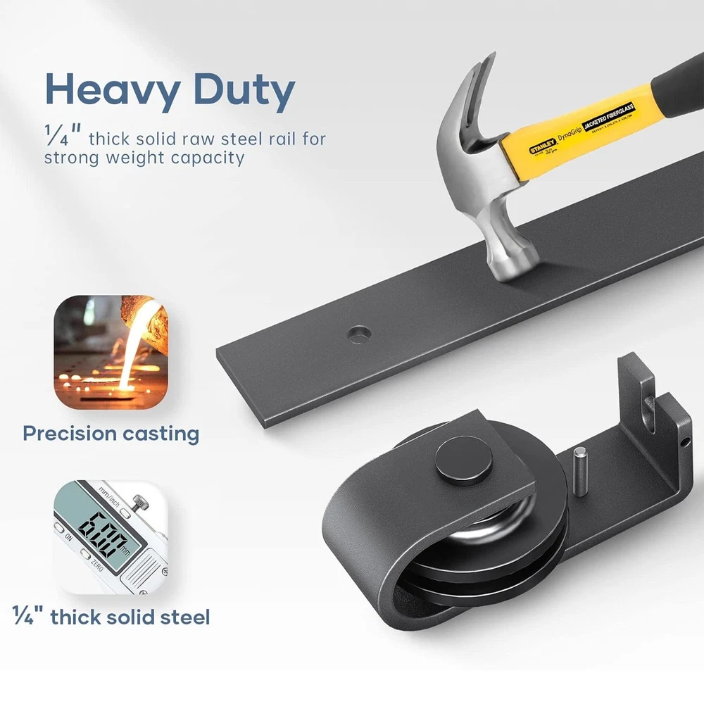 Store category Sign Up Now ! You may also like Product Description Bullet Points: Space-Maximizing Design: With its versatile functionality, our Rail Sliding Barn Door goodly saves your space while adding elegance to living rooms, dining areas, and studies. Perfect for various life situations and a wide range of applications, such as homes, businesss, and hotels. Ease Your Access: Designed to meet your need, this rail sliding barn door kit comes with 3x spacers, 2x scroll wheels, and a 1x sealing strip; plus, 3x hinges, 1x roller holder, 1x floor rail, 2x roller swivel stands, and 2x tracks ensure sufficient quantity and smooth operation. Long Lasting Durability: Experience the effortless movement of our Rail Sliding Barn Door made of high-quality carbon steel. Its solid build and wear-resistant finish guarantee a smooth and silent operation that's sure to impress. Simplified Install: Our Rail Sliding Barn Door kit comes with detailed instructions, including pictures and text, making it easy to set up without hassle, saving you time and effort. Smooth Glide: Improve your sliding barn door experience with our Rail Sliding Barn Door enhanced with a 6mm thick track, as well as bearing and nylon wheels that can hold substantial weight, perfect for heavy-duty applications while maintaining its practical and silent smooth glide. With a bearing and nylon wheel combination, this set provides smooth and quiet operation, making it perfect for a wide range of applications. With a sufficient quantity included, you'll have everything you need to upgrade your doors. Specifications: Colour: Black Material: carbon steel Track size: about 28 inches/70CM Track splicing method: 2 pieces Scope of application: Door panel thickness 0.5-50MM Packing List: 2*track 2*scroll wheel 2*roller swivel stand 1*roller holder 3*spacers 3*hinge 1*floor rail 1*sealing strip 1*screw pack 1*instruction manual 3*pipe clamp 35mm 3*wood screws Payment Delivery details Terms of sales About us Feedback & DSRs Payment Before you palce an order, please kindly make sure that you have a paypal account. We accept PAYPAL payment only. Payment should be completed within 2 days after auction closed, or unpaid dispute will be filed for an closing auction. An unpaid case will be filled after 4 days. Delivery details We ship to your eBay address. Each package will be shipped to US by UPS Regular Parcel with tracking number. Please check your shipping address carefully before checkout, it can't be changed if order completed. All items will be shipped within 1-2 business day upon receipt of payment.Orders placed on weekend will be shipped within 3 days. If you do not receive your item in 7-10 business days.please contact us immediately for further assistance. We will be responsible for any damages or losses incurred in the shipping process. About us We maintain high standards of excellence FIVE STAR and strive for 100% customer satisfaction! Positive Feedback is very important to us. We hope that you contact us immediately Before you give us neutral or negative feedback, so that we can satisfactorily address your concerns. We promise to offer the lowest price and high quality produce. Our working time: From Monday to Friday(9:30 am to 18:00pm), we don't working on holidays ,hope you can understand and know that , thank you. Please always talk to us via ebay Message. We appreciate your business and look forward to growing our e-Bay sales with satisfied customers. Feedback Contact us If you have any questions, please feel free to contact with us by ebay Message during our business hours ( 9:30a.m. to 5:30 p.m.), or email us through eBay, we will try our best to help you to resolve it. For any presale or after-sale questions,please do feel free to email us! Due to the time difference, each email will be replied within 1 working day,and weekend will be delayed a bit. Feedback
