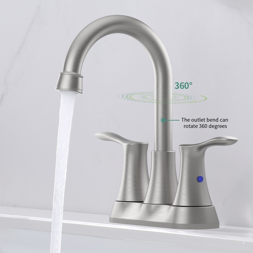This beautifully designed and stylish faucet is made of high quality materials. Anti-scratch, anti-rust, anti-corrosion, anti-rust, anti-fingerprint. Plus, the dual-handle bathroom faucet is designed to precisely control water volume and temperature, this faucet is sure to give you peace of mind.Features Color:Brushed Nickel Swivel Spout:Yes Maximum Flow Rate:1.5 gallons per minute Handle(s) Included:Yes Number of Handles:2 Hot/Cold Indicators:YesCountry of Origin: China Free Shipping Over $49.99* Details 2-Handle centerset basin faucet with Pop-up Drain Product Description: This beautifully designed and stylish faucet is made of high quality materials. Anti-scratch, anti-rust, anti-corrosion, anti-rust, anti-fingerprint. Plus, the dual-handle bathroom faucet is designed to precisely control water volume and temperature, this faucet is sure to give you peace of mind. Features Color:Brushed Nickel Swivel Spout:Yes Maximum Flow Rate:1.5 gallons per minute Handle(s) Included:Yes Number of Handles:2 Hot/Cold Indicators:Yes Country of OriginChina