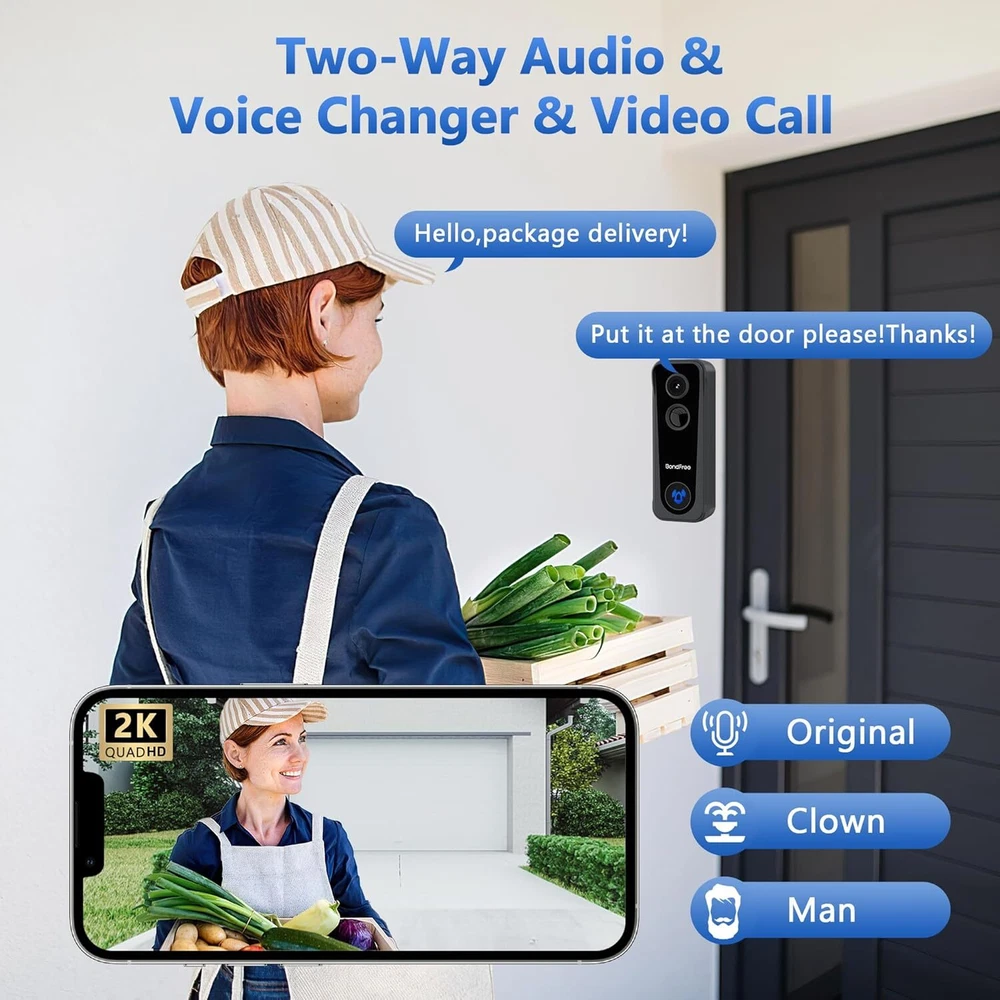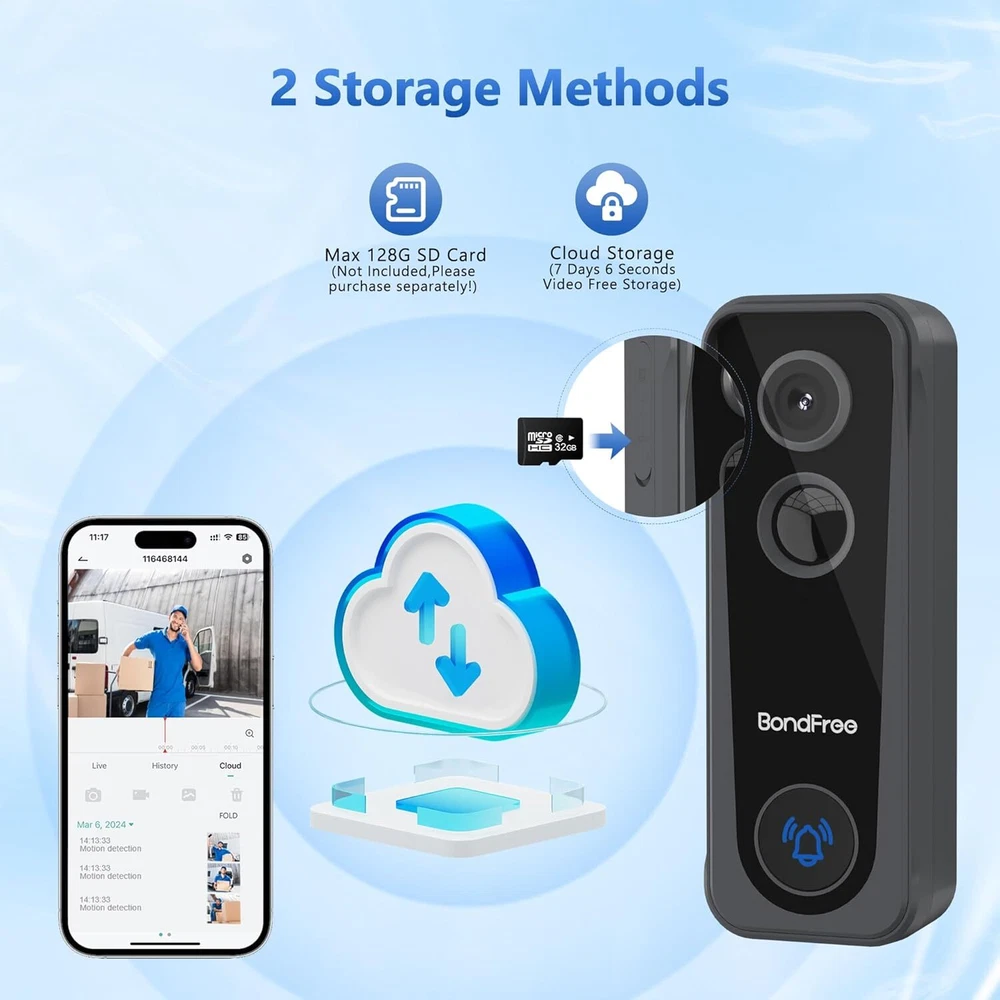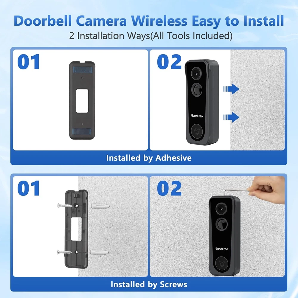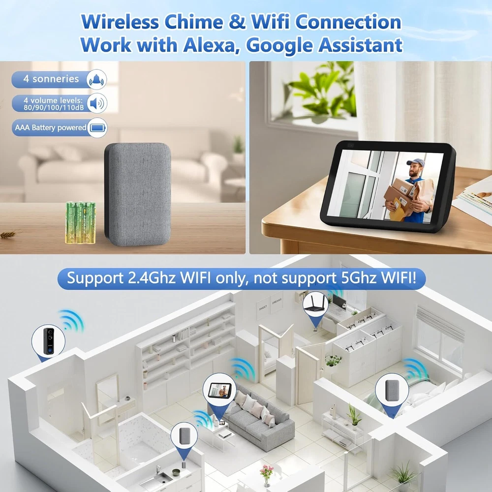 Product Description Wireless Doorbell Camera, 2K Video Doorbell Wireless, 2.4GWiFi, 2-Way Audio, Night Vision, Battery, Cloud SD Card Storage, Compatible with Alexa, Google Assistant, Grey 【Doorbell Camera】2K HD and 3 million pixels picture quality is clear and vivid.PIR motion detection sensor that will sound an alarm to you when motion is detected; 120° wide angle view is more accurate capture of image; IP65 material casing, this wireless video doorbell is water and dust resistant;IR night vision has high definition resolution so you won't miss any details even in low light environment. 【Cloud or SD card Storage】This smart doorbell camera not only can use cloud storage but also can support up to 128G SD card storage (SD card is not included in the product, need to buy separately). 7-day rolling forever free trial of 6-second video cloud storage. 【5200mAH Battery & Wireless Chime】 5200mAH 18650 lithium battery power supply.The longest standby tie can reach 5 months. On average, it can be used for 2 months after being woken up 20 times a day on a full charge; Doorbell camera wireless with free chime, can be placed anywhere,powered by 3 x AAA batteries. 【2.4Ghz WIFI & Alexa & Google Assistant】2.4Ghz WiFi,does not support 5Ghz WiFi. Works with Alexa and Google Assistant.If you have any questions about this wireless smart video doorbell, please contact us and we will reply you within 24 hours! 【Easy to install & Package Includes】Surveillance Video Doorbell for home comes with all mounting accessories and installation instructions that you can easily to mount the doorbell on the side of the door.1 x Video Doorbell; 1 x Wireless Chime (with 3 of AAA batteries) ; 1 x Type-C Cable; 1 x Installation Instructions; 2 x Stickers; 2 x Screwdriver; 3 x Expansion Screws; 3 x Screws. About Us We are a reputable seller with many years of experience selling on eBay. Our goal is to provide high-quality products and excellent customer service. Shipping Items will be shipped within 1-3 business days when we received payment. (Orders are not processed on weekends & holidays) Tracking information will be sent once item is shipped. Delivery time depends on destination and other factors Item is shipped to ebay address. Leaving correct address can minimize delay. For international shipping and shipping to Guam, Hawaii and Alaska, Please contact us before placing the order. International buyers please note: Import duties, taxes and charges are not included in the item price or shipping charges. These charges are buyer’s responsibility. We will try our best to reduce the risk of the custom duties. Local pick-up is unavailable at the moment. Contact Us We reply any email messages within 1 business / working days(off-duty at weekend). If you do not get a response from us, then please check your junk or spam mailbox. Our Business hours: Mon-Fri 9:00-18:00, UTC/GMT +8 hours. Please contact us either by clicking "contact seller" in the "purchase history" section or simply click "ask a question" at the bottom of this page. If you are unsatisfied with our item or service, please contact us before leaving any feedback. We are committed to resolve all issues in a friendly and satisfactory manner.