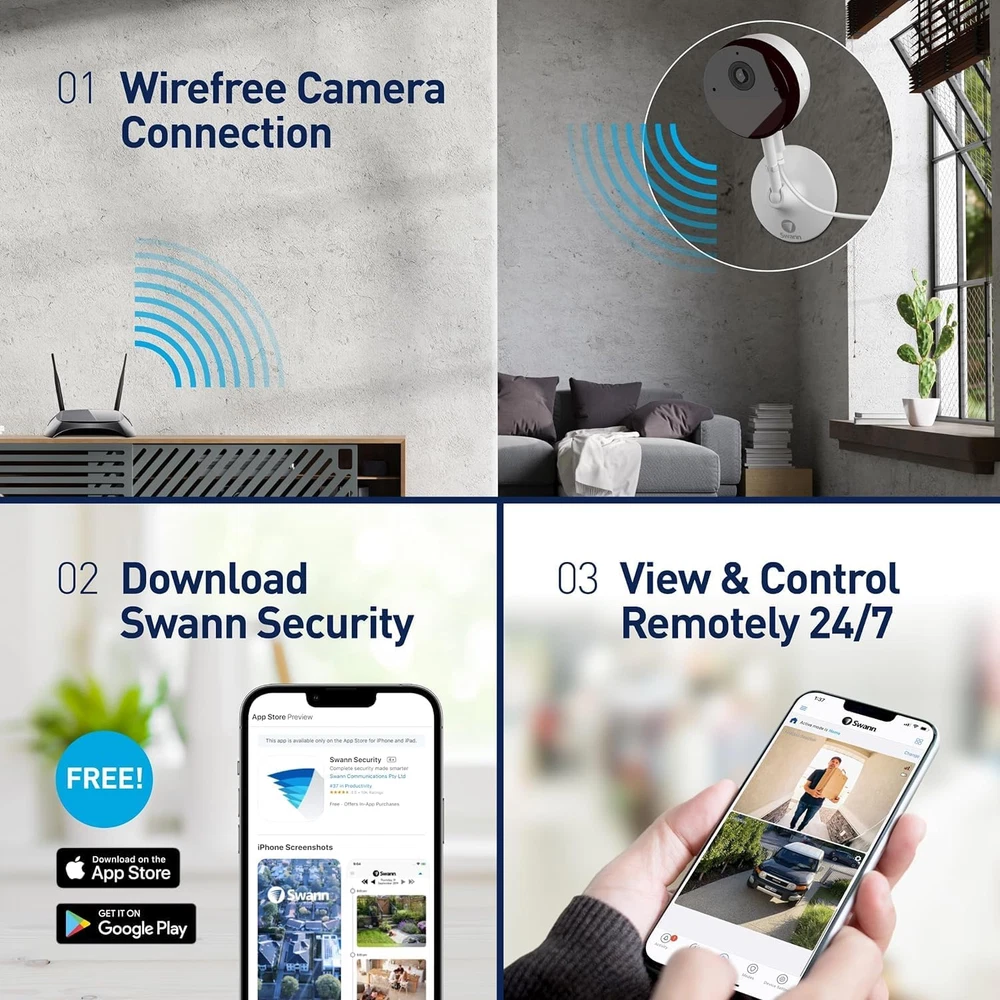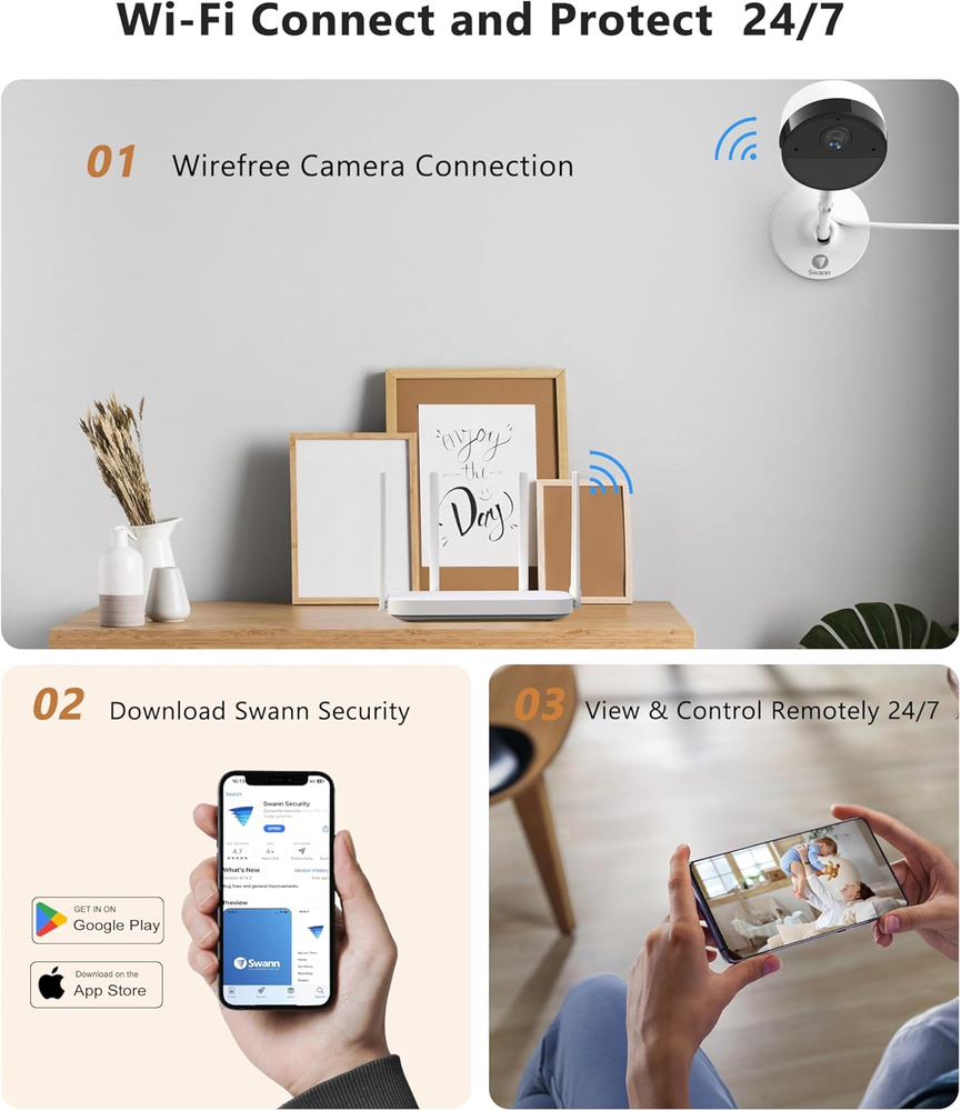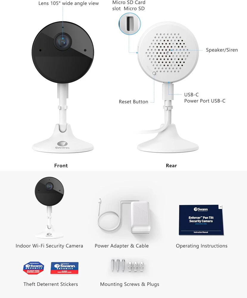 Store New Arrivals Add to Favorite View Feedback Contact Wi-Fi Baby Monitor Security Camera, 2K Quad HD Powered Home Surveillance Cameras with Night Vision,2-Way Talk, Siren, Heat and Motion Triggered Mobile Alerts, Free Cloud & Local Recording Description Part Number SWIFI-2KICAM-US Warranty Description Warranty Item Dimensions LxWxH 2.87 x 7.87 x 8.27 inches Color White Included Components Wi-Fi Baby Monitor Security Camera, 2K Quad HD Powered Home Surveillance Cameras with Night Vision,2-Way Talk, Siren, Heat and Motion Triggered Mobile Alerts, Free Cloud & Local Recording Material plastic Package Weight 0.43 Kilograms Suggested Users unisex-adult Number of Items 1 Model Name home Size 1-Pack Indoor Camera Item Package Dimensions L x W x H 8.58 x 7.83 x 3.07 inches 2K Video Quality: Discover the perfect balance between clarity and bandwidth efficiency with the Swann Indoor Security Camera's 2K Wi-Fi surveillance system. Offering superior video resolution, this Swann camera delivers crisp images that help you identify finer details, ensuring every moment is captured with precision. Heat and Motion Detection: Boasting sophisticated heat and motion sensors, the Swann 2KI security camera reliably identifies significant movements, reducing false alerts. The added Person Detection feature adds another layer of security by specifically detecting human movement, providing a more accurate and focused surveillance. Night Vision and 2-Way Talk: Stay assured even after sundown with Swann's powerful night vision capability, ensuring continuous protection around the clock. The 2-Way Talk feature allows you to communicate directly through the camera, making it an excellent tool for checking in on pets, children, or to deter potential intruders. Easy Installation and Use: Setting up your Swann Indoor Security Camera is a breeze. The intuitive design and user-friendly Swann Security app guide you through each step of the setup process. The app also allows for real-time monitoring, granting you control and peace of mind right at your fingertips. Flexible Recording and Storage: Never miss a moment with options for both cloud and local recording. The Swann security system allows you to securely save footage on the cloud, while also offering the possibility of local storage for immediate access and control. Choose the mode that suits your needs best, knowing your data is safely stored. Product Description The video showcases the product in use. The video guides you through product setup. The video compares multiple products. The video shows the product being unpacked. 1 Wide Viewing Angle 2 2K Quad HD 3 True Detect 4 Speak to see 1 Night Vision 2 2 Way Talk 3 Security in Home Baby Monitor Pet Monitor Child Monitor Elderly monitor Swann 4k Master security camera system Add to Cart Add to Cart Add to Cart Add to Cart Customer Reviews 4.4 out of 5 stars 490 4.1 out of 5 stars 281 4.1 out of 5 stars 281 3.8 out of 5 stars 11 4.1 out of 5 stars 281 Price $859.99 $ 859 . 99 — $759.99 $ 759 . 99 $451.19 $ 451 . 19 $579.00 $ 579 . 00 Weatherproof √ √ √ √ √ Number Of Channels 16 16 8 8 8 Number Of Cameras 8 16 8 8 8 Connectivity Tech Wired Wired Wired Wired Wired Video Resolution 4K 4K 4K 4K 4K Memory Capacity 2 TB 2 TB 2 TB 2 TB 2 TB Compatible Devices Cameras Cameras Cameras Cameras Cameras Night Vision Color Night Vision Color Night Vision Color Night Vision Color Night Vision Color Night Vision ABOUT US We offer the best prices around on high quality products. Our E-store includes media such as books, movies, music and games while offering electronics, toys, sporting apparel, clothing, tools, general home, garden items and more. SHIPPING We are always working hard to ensure your package arrives as soon as possible. Please understand that some factors like weather, high postal traffic, and the performance of shipping companies are outside of our control. We offer free shipping to the lower 48 states and ship within 2 business days of payment, usually sooner. We do not accept P.O. Boxes. Please provide a physical address. For shipping outside of the continental USA, we only use eBay's Global Shipping Program.The item is shipped to KY and then sent to the rest of the world. International customers are responsible for all duties and taxes. Continue to check out in order to calculate costs for shipping the item to your country. Messages regarding eBay's Global Shipping Program MUST be directed at eBay EXCLUSIVELY. RETURNS We offer a 30-Day Return Policy on items which you are not completely satisfied with. You have the option for a full-refund or an exchange of the item. No returns are available on items shipped outside of the USA. PAYMENT We accept PayPal. CONTACT US This page content is yet to come Please ad us to your favorite seller and visit again later Thank You CUSTOMER SATISFACTION We try our very best to make sure every customer is completely satisfied. If there's a problem, message us! We're happy to help. WE ACCEPT Copyright © 2021 AutoDS. | All Rights Reserved