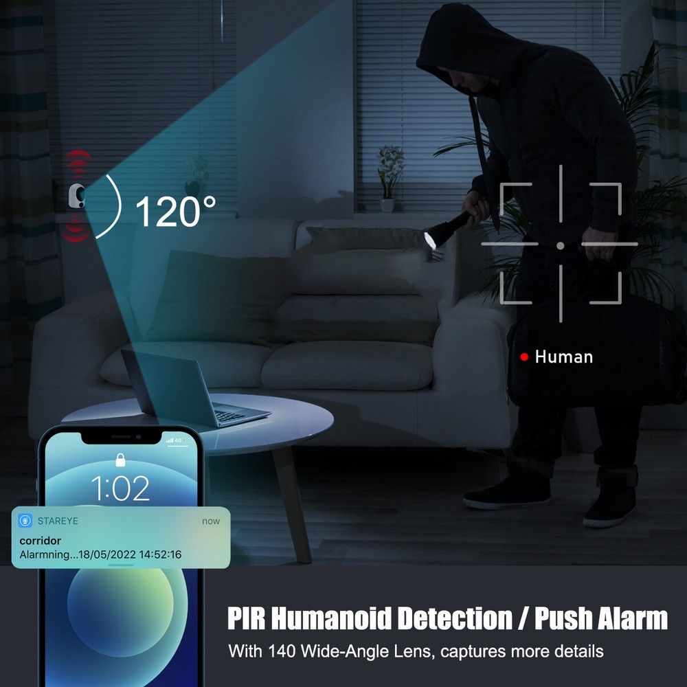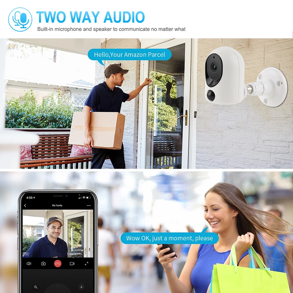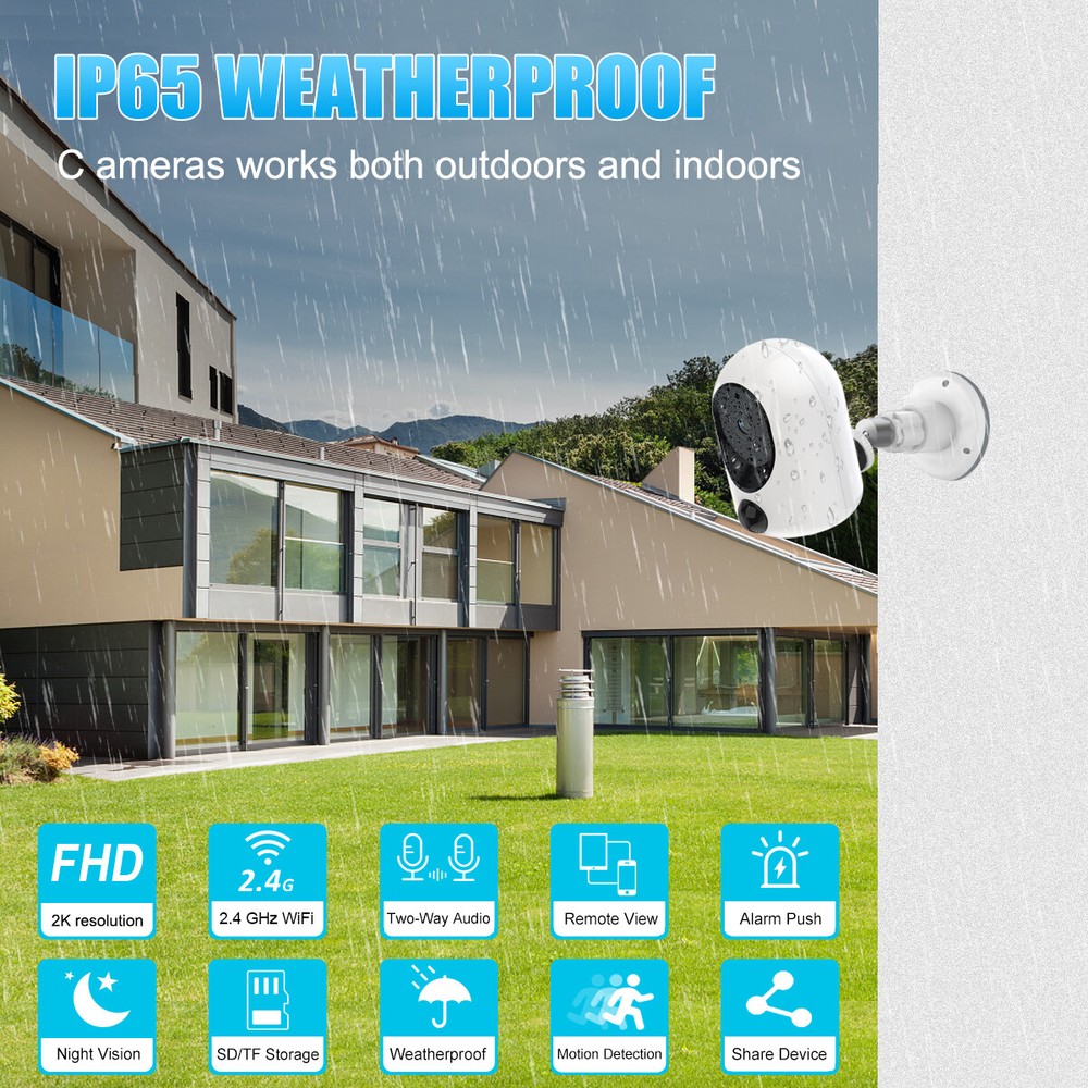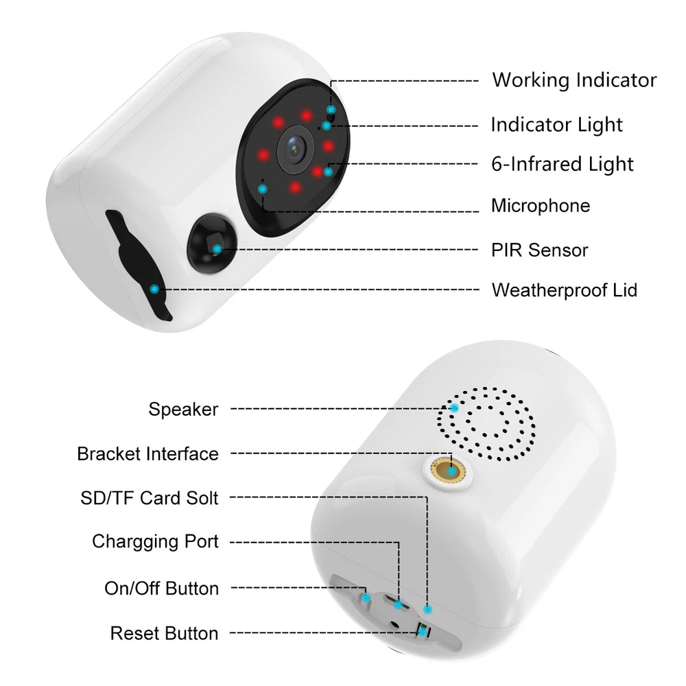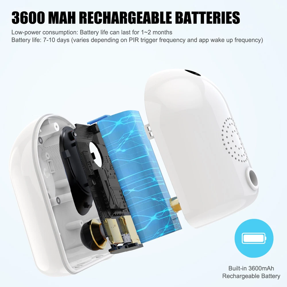 Product Description Note: The camera working mode is intelligent PIR sensing work, the camera will enter energy-saving mode when no one, objects pass by, PIR sensing automatically switches into the monitoring mode and record video, you can also wake up at any time in the APP terminal. Features: 1) Built-in 3600 mAh high-capacity battery, low power consumption, full power continuous use time up to 7-10 days 2) 2K resolution ultra-clear monitoring, suitable for indoor and outdoor installation. 3) PIR accurate sensing, sensing the human body automatically enters the monitoring mode and record monitoring video. 4) IP65 waterproof, can be installed indoors and under the eaves, rain splash does not affect the work of the product 5)High-definition infrared night vision, night vision distance up to 8 metres away, day and night monitoring. 6) 120 ° large viewing angle, monitoring range is 30% larger than ordinary cameras 7) Built-in microphone and speaker, can record sound, two-way intercom, voice to drive away the unknown characters 8) Max. Support 256G memory card expansion, memory card video support APP local playback Specifications: Material: plastic Main Body Size: height 86mm, diameter 60mm Lens Pixel: 400W Resolution: 2K Lens Viewing Angle: 120° Connectivity: 2.4G WiFi Compatible APP: star eye Night Vision Function: infrared night vision Night Vision Distance: 5-8 metres Working Mode: PIR Sensor PIR Trigger Distance: 6-8 metres Motion Detection: Yes Message Push: Yes Built-in Microphone: Yes Speaker: Yes Two-way Intercom: Supported ONVIF: No Memory card expansion: Max. Support 256G (not included) Built-in Battery: 3600 mAh Battery life: 7-10 days (varies according to PIR trigger frequency and APP wake-up frequency) Standby time: more than 30 days Charging input: 5V 2A Waterproof rating: IP65 Package included: WiFi surveillance camera x1 Mounting bracket x1 USB charging cable x1 Screwdriver x1 Mounting screw kit x1 Payment Shipping Terms Returns Contact Us We accept PayPal only. If buyer want to delay the payment because of financial problem, please contact me by the ebay message within 3 days Payment via PayPal (PayPal accepts all major credits/debit cards and eCheque) ECheque payment will tak e 3-10 days to get clear, thus DELAYing the shipment. Handling time: 1 business day (Orders are not processed on weekends & holidays) Tracking information will be sent once item is shipped. Local pick-up is unavailable at the moment. For international shipping and shipping to Guam, Hawaii and Alaska, Please contact us before placing the order. Item is shipped to ebay address. Leaving correct address can minimize delay. For any issues with Defects, Return, Item Exchange request, please contact us first and send us a message first before opening any type of case or request. We devote ourselves making EVERY CUSTOMER in 100% Satisfactory and resolve any problem. We highly value and appreciate your business. Thank you. No returns will be accepted without an RMA number. Please contact us for the RMA number. Return is acceptable within 30 days of delivery. Return for replacement or money back is optional. Returned items must be in the brand new, unaltered and resalable condition. Seller is not responsible for any labor cost, expense in a dealer store, or damage due to wrong installation. Return is accepted within 14 days after the buyer's receiving the item. (Excluding contrived damagement or misusage).100% money-back Guaranteed! All product will be tested in 100% before delivery.If the item is defected by the processing of postage,Buyer has up to 14 days from date of receipt for exchange of a new one.All shipping charges for returned products are to be paid by the buyer,Please contact us for the return address All messages will be answered within 24 office hours. Please contact us either by clicking "contact seller" in the "purchase history" section or simply click "ask a question" at the bottom of this page. If you are unsatisfied with our item or service, please contact us before leaving any feedback. We are committed to resolve all issues in a friendly and satisfactory manner. We always reply to messages within 2 business days (off-duty at weekend). If you do not get a response from us, then please check your junk or spam mailbox. Payment We accept PayPal only. If buyer want to delay the payment because of financial problem, please contact me by the ebay message within 3 days Payment via PayPal (PayPal accepts all major credits/debit cards and eCheque) ECheque payment will tak e 3-10 days to get clear, thus DELAYing the shipment. Shipping Handling time: 1 business day (Orders are not processed on weekends & holidays) Tracking information will be sent once item is shipped. Local pick-up is unavailable at the moment. For international shipping and shipping to Guam, Hawaii and Alaska, Please contact us before placing the order. Item is shipped to ebay address. Leaving correct address can minimize delay. Terms For any issues with Defects, Return, Item Exchange request, please contact us first and send us a message first before opening any type of case or request. We devote ourselves making EVERY CUSTOMER in 100% Satisfactory and resolve any problem. We highly value and appreciate your business. Thank you. No returns will be accepted without an RMA number. Please contact us for the RMA number. Return is acceptable within 30 days of delivery. Return for replacement or money back is optional. Returned items must be in the brand new, unaltered and resalable condition. Seller is not responsible for any labor cost, expense in a dealer store, or damage due to wrong installation. Returns Return is accepted within 14 days after the buyer's receiving the item. (Excluding contrived damagement or misusage).100% money-back Guaranteed! All product will be tested in 100% before delivery.If the item is defected by the processing of postage,Buyer has up to 14 days from date of receipt for exchange of a new one.All shippin