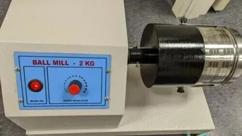 Laboratory Ball Mill 2kg Motor Driven Heavy Duty with Stainless Steel Balls Description:- Used for preparation of samples for analysis with minimum loss of moisture of volatile constituents. Weight distribution and balancing of rotating parts has been adjusted to provide greater stability and quiet performance with reduced vibration. Suitability for wider variety of commercial materials. 2.0 kg of capacity and 80 rpm speed. Runs on 220 VAC Comes with a Stainless Steel Container and metal Balls