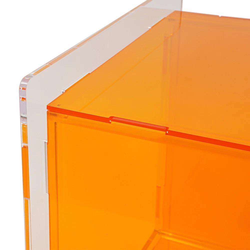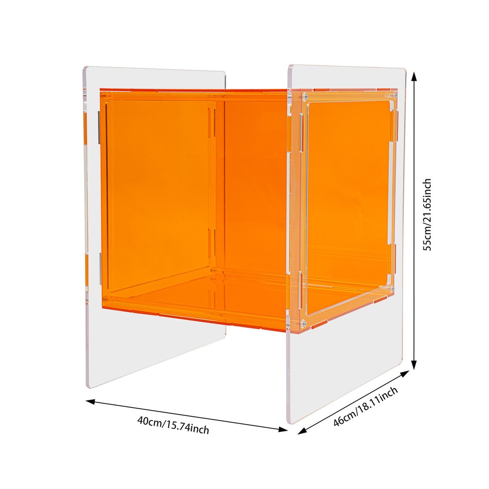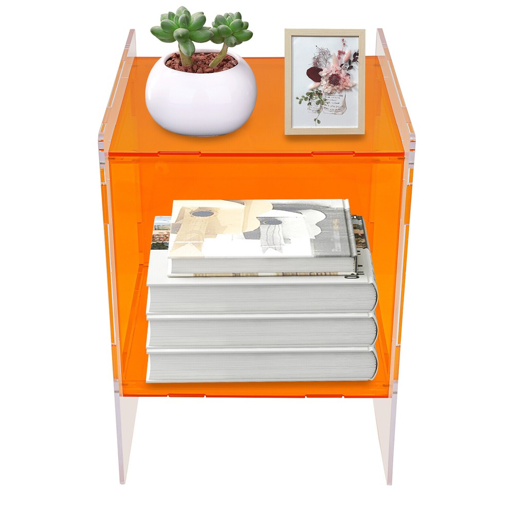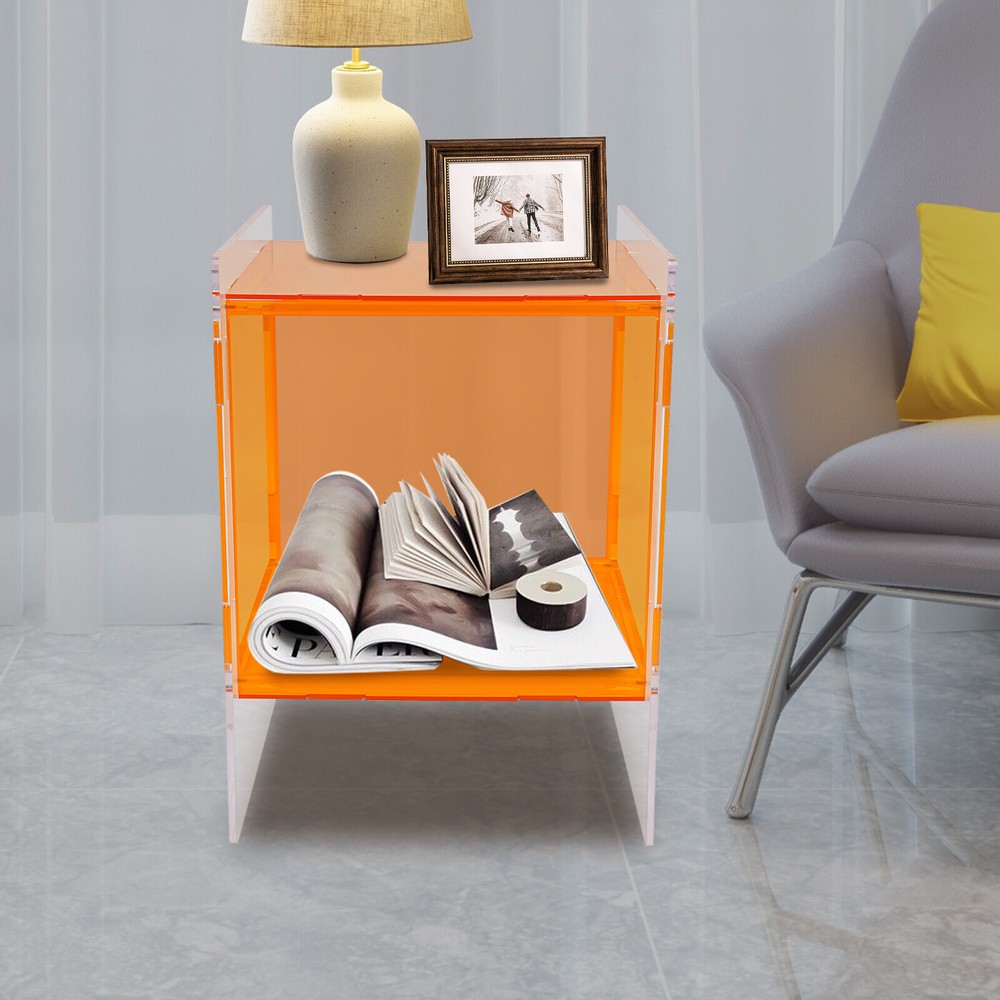 2-Layers Clear Side End Table Acrylic Coffee Table for Living Room Bedside Table Description This acrylic bedside table is not only sturdy and durable but also thoughtfully designed and powerful. The 2-tier structure allows you to sort various jewelry, cosmetics, lamps, books, snacks, and cups. With this product, you can create a neat and cozy room environment, so that you can have a good mood every day! Key Features Build to Last : Premium acrylic with an exquisite laser cutting process makes this product environmentally friendly , safe, rust-resistant , corrosion-resistant , and less prone to deform, so it can maintain aesthetics and practicality for a long time. Storage Assistant: With its 2-tier construction and suitable tier spacing (15.75in), this acrylic bedside table offers plenty of storage space for your items. You can sort your books, toys, cosmetics, plants, and decorative items (all not included) on separate tiers. Suitable Load-bearing Capacity: High-quality material(8mm) and rectangular structure allow this product to hold 22.05 lbs in total, so you can use it with confidence. Space-saving : With its cuboidal structure and vertical design, this product has a small footprint(18.11*15.75 inches) and can be placed in most corners to create a tidy space. Ideal Gift : Beautiful appearance and practical function make it a thoughtful housewarming gift for friends. Easy to Install : The simple structure, pre-drilled holes, and complete accessories allow you to complete installation and start using it in a short period. Nice Appearance: It has a pleasing orange color and smooth lines, giving it a modern appearance that matches most décor styles, making it suitable for most usage scenarios. Effortless Cleaning : With its open construction and smooth surface, you can simply rinse it with water or wipe off surface dust with a damp rag. Good Customer Service : We stand behind all our guests and look forward to assisting you with your purchase. It is our pleasure to answer your confusion and questions. The end of the story between us is not "we sell and you buy". Details Open Storage Compartment : Open storage compartments make it easy to place your books and other items, and allow for easy access. Raised Bottom : The 3.94-inch raised design prevents the bottom from getting wet while making it easy for you to clean. Raised Guardrail : The 1.97-inch raised guardrail prevents items from sliding off. Smooth Surface : The product has a smooth, flat, burr-free surface, making it safer to install and clean. Application It is suitable for indoor places such as the living room, office, and bedroom. It can be used as a bedside table, sofa side table, or storage cabinet for storing cosmetics, books, newspapers, magazines, cups, sundries, etc. Specification Material: Acrylic Color: Orange Process: Laser Cutting Assembly Required: Yes Style: Modern Shape: Rectangular Mount Type: Floor Mount Number of Tiers: 2 Total Load-bearing Capacity: 10kg/22.05lbs Tier Spacing: 40cm/15.75in Plate Thickness: 8mm/0.31in Guardrail Height: 5cm/1.97in Bottom Height: 10cm/3.94in Product Size: 46*40*55cm/18.11*15.75*21.65in Package Size: 58*50*10cm/22.83*19.69*3.94in Gross Weight: 7kg/15.43lbs Net Weight: 6.5kg/14.33lbs Package Included 1*Acrylic Bedside Table All Accessories for Assembly Notes Please confirm the product dimensions before purchasing. Please note that this product does not contain any decorations. Please allow the slight color difference caused by the shooting light and 1-3 cm error due to manual measurement, and make sure you do not mind before ordering. Payment Delivery details Terms of sales About us Contact us Payment We accept ebay payment 。 Fees such as import duties, taxes are not included in the item price or shipping costs. These charges are the buyer's responsibility. Delivery details Shipping: 2-9 working days to: USA Terms of sales We maintain high standards of excellence and strive for hundred percent customer satisfaction. Feedback is very important to us. We hope that you contact us immediately before you give neutral or negative feedback, so that we can address your concerns. It is impossible to address issues if we do not know about them! About us Your satis faction is our ultimate goal. We work hard to earn your trust and future business. Our certified technicians have tested each item before shipping. The unit comes with 1 year limited warranty on all manufacturing defects. a) If you receive a defective item, you may return it or ask for a discount. Please contact us within 14 days after you receive the package. b) What you returned must be intact and in its original packaging as re? u. Customer is responsible for shipping costs of the returned item. c) We will cover the cost of shipping back t with the shipping rate indicated in the registration page. We will send you a new unit or refund the full payment you paid. Thank you. Contact us Business Hour Business Hour: Monday To Friday: 8:30 AM to 5:00 PM (Beijing China time) Due to time zones, our reply to your questions may not be immediately. But within above working time, we will reply your email within 24 hours. If it's non-workdays, please kindly be patient and wait till Monday. Please contact us with ebay message. Please feel free to contact us if you have any questions. Monday To Friday: 8:30 AM to 5:00 PM (Beijing China time) Due to time zones, our reply to your questions may not be immediately. But within above working time, we will reply your email within 24 hours. If it's non-workdays, please kindly be patient and wait till Monday. Please contact us with ebay message. Please feel free to contact us if you have any questions. Brand Unbranded Item Height 21.65in Item Length 18.11in Item Width 15.75in Type Side/End Table Color Orange Material Acrylic UPC Does not apply