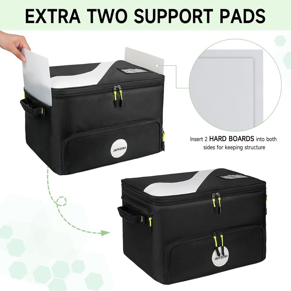 Golf Trunk Organizer, 2 Layers Golf Accessories Bag for Men, Waterproof Car Golf Storage Organizer with Compartment for 2 Pairs of Shoes, Golf Gifts for Men Women, Black Keep Structure: Our golf accessories bag comes with extra 2 support pads, you can insert these 2 hard pads into both sides for keeping the bag structure. And the anti-slip bottom base added durability. Separate Shoe Compartment: The golf organizer for car has shoe compartments to hold 2 pairs of shoes, up to size 11. The breathable design keeps air flowing, helping you solve odor problems. The golf logo design adds a touch of color to this golf bag. Large Capacity: The golf car bag organizer adopts multi-pocket design, and main compartment has 4 removable dividers, which can divide the space into 5 parts, can easily store your golf accessories such as towels, T-shirts, socks, hats, gloves, etc. Sturdy: The golf car organizer is made of high quality oxford fabric materials with reinforced corners, which has excellent wear resistance, scratch resistance and water resistance. Double layer design provides more space to store your golf accessories. Ideal Present: This golf trunk organizer stores all your golf essentials in your car for easy access, making it an ideal golf present for golfers. Also a great choice for Father's Day, Mother's Day, Thanksgiving Days, etc.