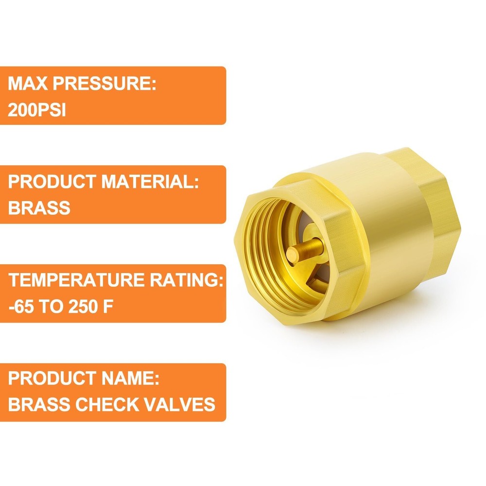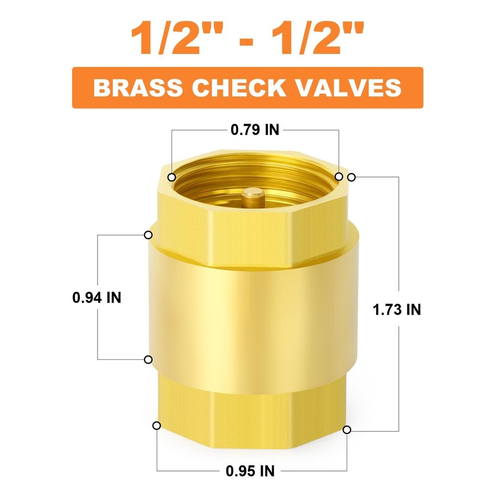 eBay Product Listing Welcome to Your Favorite My Store Your satisfaction is our top priority – Shop confidently 2PCS Brass Check Valve 1/2" FNPT Thread, Backflow Prevention, One Way Check Valves Item Gallery Item Description 【SIZE】: 1/2" FNPT Thread Check Valve 【Rated value】: The maximum working pressure is 200PSI 【Material】: Using brass valve body and stainless steel spring, it has the characteristics of corrosion resistance, high temperature ductility and low magnetic permeability. 【Introduction】: Used to prevent fluid backflow, good tightness, no leakage, easy to install and disassemble. 【Applications】: Widely used in fuel/air/liquid/oil/gas, pipeline applications and connections, and can be used in various measuring devices and collectors. Special Features BASIC PARAMETERS: Product Name : Check Valve Material: High Quality Brass FEATURES: 1. Made of solid brass, rit has the characteristics of corrosion resistance, high temperature ductility and low magnetic permeability. 2. Prevent fluid backflow. 3. Good sealing, no leakage, easy installation and disassembly. 4. Widely used in fuel/air/liquid/oil/gas, pipeline applications and connections, and can be used in various measuring devices and collectors. 5. Working pressure: 200PSI PACKAGE INCLUDED: 2 x 1/2" FNPT Thread Check Valve 1 x Teflon Tape NOTICE: Before using Check Valve and other connecting products, wrap proper amount of teflon tape to prevent air leakage Our Guarantee To You We offer fast shipping, free delivery, and 100% customer satisfaction guarantee. Not satisfied? Return your item for free within 30 days. 30-Day Free Returns Shipping Details Items will be sent to your eBay address. Please verify before purchasing. Typical delivery within 3-7 business days. Professional shipping services used for all orders. We ship to the continental US (48 states only). Unable to deliver to Alaska, Hawaii, or territories. No APO/FPO or PO Box deliveries available. We use eco-friendly packaging Payment Options We accept these secure payment methods: All transactions securely processed through eBay's payment system. Simple Returns 30-Day Satisfaction Promise Contact us through eBay messages within 30 days of delivery. We'll provide return instructions and our address. Return the item in its original condition. We'll process your refund within 48 hours of receiving the item. Get In Touch Have questions about your order? Contact us through eBay messaging for prompt assistance. We typically respond within 24 hours.