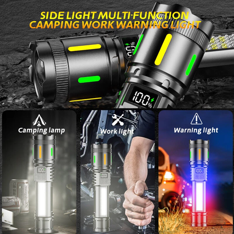 Electric Callus Remover Foot Sander Rough Feet Rechargeable Dead Skin Tools USA 11.98 USD 12.99 USD Free shipping 8% off Super Bright 990000LM Rechargeable LED Headlamp Head Light Torch Flashlight Lamp 12.98 USD Free shipping 19"Men Laptop Backpack Bag Anti-Theft Extra Large Travel School Waterproof Bag 25.59 USD Free shipping Hair Curling iron Short And Long Hair Ceramic Coating Two-Temperature Control 13.99 USD 0.99 USD Cordless Massage Belt Electric Heated with Back Support Waist Vibration Massager 29.59 USD Free shipping Concealed Carry Fanny Holster Tactical Military Pistol Waist Pouch Gun Bag 12.33 USD 12.98 USD Free shipping 5% off Rechargeable Spotlight,Spot Lights Hand Held Large Flashlight 1000,000 Lumens 27.98 USD 2.66 USD Solar Portable LED Flashlight USB Rechargeable Camping Tent Light Lantern Lamps 10.99 USD Free shipping Portable Plasma Pen Mole Removal Dark Spot Remover Skin Wart Tag Tattoo Beauty 16.5 USD Free shipping 36"in Tactical For Gun Bag Gun Padded Soft Case Carbine Hunting Black Backpack 24.29 USD 26.99 USD 0.99 USD 10% off 50PCS GOLF Shoe Spikes Replacement Studs Soft Fast Twist Cleat For Footjoy USA 10.99 USD 0.99 USD TWS Audifonos inalambricos 5.3 Bluetooth Auriculares For iPhone Samsung Android 9.99 USD Free shipping Solar Power 300W LED Torch USB Rechargeable Light Outdoor Camping Tent Lamp Bulb 12.99 USD Free shipping Tactical Helmet Cover for Fast MH PJ BJ Helmet For Airsoft Paintball Helmet Cove 4.99 USD Free shipping Bicycle Motorcycle Mount Invisible Selfie Stick For Gopro Insta360 X3 X4 Max 20.99 USD Free shipping 1000 Lumens Premium Rechargeable LED Flashlight Stainless Steel Pen Light 6.99 USD Free shipping Product Description Description : Super Bright Rechargeable Flashlight: Equipped with upgraded efficient Chip LED chips, the rechargeable flashlight emits a stable and super bright lighting. Since the light penetration is stronger than other same-level lamp beads', its beam can pass through dust and fog well, especially suitable for foggy and rainy days with low visibility. 5 Light Modes & Zoomable Focus: There are 5 modes of the rechargeable flashlight: High / Low / Strobe for the main light, and White / Red&Blue Strobe for the COB side light. Equipped with zoomable head, the small rechargeable flashlight high lumens can emit a powerful focused lighting and an extensive extended lighting by adjusting the light head. Fast Charging & Power Indicator: Built-in a rechargeable lithium-ion battery and equipped with more energy-efficient chips, the rechargeable flashlight battery powered working time is up to 7 hours with the low mode. The USB C fast charging input achieves 30% reduction in charging time. It can be charged by power bank, USB plug, etc, with the USB C charging cable. You can clearly see the remaining power at the digital power indicator. IPX6 Waterproof: This flashlight head adopts the high grade black aluminium alloy, and the frame adopts the ABS plastic. The waterproof grade of this flash light reaches IPX6 Waterproof. This rechargeable flashlight is non-slip, shockproof, waterproof, rainproof, dustproof. It can work well in severe outdoor weather conditions, such as rain and snow. It is an ideal outdoor handheld flashlight for working, hiking, camping, repairing, hunting, and Sogidon fishing. Easy to Carry: Led flashlight is equipped with lanyard and pocket clip, which can be hung on your wrist or attach to your pocket , backpack shoulder strap, hat and belt. As its compact design, you carry this small handheld flashlight in your pocket or the car glove compartment. Specification : Product Type: Flashlight Color: Black Weight: 180g Waterproof: IPX6 Working Time: 4-7hrs Charging Time: 3.5-5hrs Material: Aluminum, Plastic Battery Capacity: 3000mAh Power Source: Battery Powered Charging Method: Type-C Charging Size: 15.3*3.5*2.8cm / 6.02*1.38*1.1inch Lighting Mode: 5 Modes(High / Low / Strobe for the main light; White / Red&Blue Strobe for the COB Side Light) Package Included: 1 x Flashlight 1 x USB Cable Note: Due to the different monitor and light effect, the actual color of the item might be slightly different from the color showed on the pictures. Thank you! Please allow 1-2cm measuring deviation due to manual measurement. Payment Shipping Returns Contact Us 1. This is the payment method we can accept: Paypal 2. You can checkout and pay immediately after the auction ends or you complete the purchases. If you need an eBay invoice sent to you by Email, please contact us before making payments. 3.Once the checkout is completed, you will not be able to include any additional purchases. We start to process and fulfill your order once payment is received. New purchases after the checkout will be processed separately. 4. Payments are expected within 4 days after the order is confirmed. Unpaid item (UPI) strike may be filed with eBay upon non-receipt of payment. 1. How much is the shipping & handling (S&H)? Our shipping and handling charges are clearly stated in the Shipping and Payments section of the item page, and we provide Free Shipping for most items. 2. For multiple purchases, the combine shipping discount will be automatically calculated when you check out and pay all of your purchases together. Items checked out separately may not be combined and the combine shipping discount will not be offered automatically. 3. Please make sure the correct Ship-To address is entered before checking out. Once the payment is completed, you may not be able to change the shipping address. We shall not be held responsible for any wrong or undeliverable addresses. 4. We usually ship within 1-2 business days of receiving cleared payment. 1. We put buyer's satisfaction at top priority. If you're not pleased with your purchases, we'll be happy to make an exchange or refund the item total price less Shipping and Handling (S&H) charges within 30 days of your purchases. 2. For any Exchange, Refund or Return, the item must be in its original condition, includ