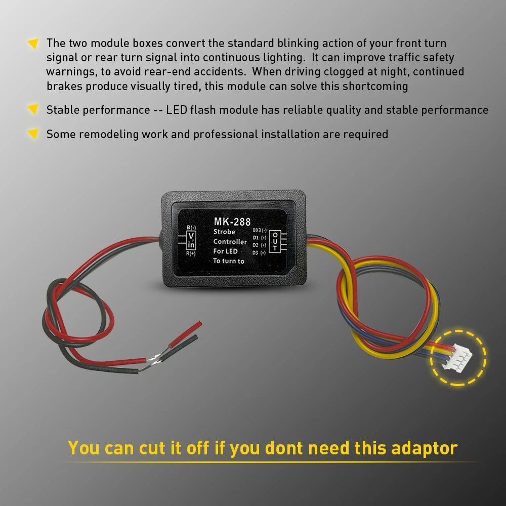 Specifications: Color: Black Material: ABS Input:12V DC, Output: 12V DC; supports up to 21W simultaneously Function:With the successional flash module box installed, your car's turn signal lights will get three sequential outputs with each flashing about 0.28 seconds for a full turn signal rotation of 0.85 seconds. Fits for: Most car's front or rear turn signal lights but needed some retrofitting work. Features: *Stable performance Equipped with LED flash module with reliable quality and stable performance. *Professional installation 2PCS 3-Step Sequential Flow Semi Dynamic Chase Flash Light Tail Box Module 12V Specifications: Color: Black Material: ABS Input:12V DC, Output: 12V DC; supports up to 21W simultaneously Function:With the successional flash module box installed, your car's turn signal lights will get three sequential outputs with each flashing about 0.28 seconds for a full turn signal rotation of 0.85 seconds. Fits for: Most car's front or rear turn signal lights but needed some retrofitting work. Features: *Stable performance Equipped with LED flash module with reliable quality and stable performance. *Professional installation Some remodeling work and professional installation are required. If you do not need the output adapter, you can cut it off. *Safety The two module boxes convert the standard flashing action to your forward turn signal or rear turn signal for continuous illumination. It can improve traffic safety warnings and avoid rear-ending accidents.It also can solve the problem of visual fatigue caused by braking continuously when there is a traffic jam. Package Included: 3-step Sequential Chase Flash Module *2 Item Specifics Brand Unbranded Number Of Pieces 2 Type 3-step Sequential Chase Flash Module Placement on Vehicle Front, Left, Rear Material ABS Interchange Part Number Tail Light Controller Fitment Type Direct Replacement Superseded Part Number 3-Steps Sequential Module Boxes System Interchange Part Number Tail Light Controller Fitment Type Direct Replacement Superseded Part Number 3-Steps Sequential Module Boxes System Payment We accept PayPal via eBay Secure Check-Out only. Immediate payment needs to be processed for items with Add to Cart option so that any promotional discounts can be applied to your order immediately. Shipping 1 .We do everything we can to ship your orders out as soon as possible. 2. Shipping and Handling: We process orders within two business day after the payment was clear. Returns Our 30-day Satisfaction Guarantee assures our customers that they will receive all orders promptly and exactly as described. In addition, it allows customers to return new and unused products in their original factory condition for any reason within 30 days from the date of purchase. 1. All returns must be pre-approved by AUXITO and have a return merchandise authorization(RMA) number. Unauthorized returns will not be accepted. 2. Buyers are responsible for appropriate packing, returning shipping cost, insurance and returning the item in "new" condition. Used items will not be accepted for return. 3. We will replace the returning item with an identical item, issue a full store credit or a full refund. Contact Us Our Working Time:(GMT+8)Monday to Friday,9:00-18:00. For inquires and customer support, please send your email via ebay email system. All emails will be responded to within 24 hours during business days. Feedbacks 1. We appreciate your business and strived to improve our customer service and our commitment to quality. 2. We will leave a positive feedback immediately after payment is received. We appreciate a positive feedback as much as you do. 3. If for some reason there is any issue with the purchase, please contact us prior to leaving feedback, and we will be glad to work with you to have it resolved. DESCRIPTION PAYMENT SHIPPING RETURN POLICY CONTACT US Hot Item Fit For 2015-2019 Hyundai Center Light Gray Sonata Armrest Console Lid Cover USD 12.34 190 PCS Bumper Fender Moulding Side Garnish Grille Retainer Clip ABS Various USD 10.44 146PCS For Toyota RAV4 Fender Door Hood Bumper Trim Clip Retainer Fastener Kit USD 10.92 Waterproof Motorcycle Handlebar Dual USB Phone Charger Cigarette Lighter Socket USD 13.29 4" Red Truck Long Performance High Flow Cold Air Intake Cone Dry Filter Cotton USD 28.99 Hot Item 4" Red Truck Long Performance High Flow Cold Air Intake Cone Dry Filter Cotton USD 28.99 146PCS For Toyota RAV4 Fender Door Hood Bumper Trim Clip Retainer Fastener Kit USD 10.92 Fit For 2015-2019 Hyundai Center Light Gray Sonata Armrest Console Lid Cover USD 12.34 Waterproof Motorcycle Handlebar Dual USB Phone Charger Cigarette Lighter Socket USD 13.29 190 PCS Bumper Fender Moulding Side Garnish Grille Retainer Clip ABS Various USD 10.44 2PCS 3-Step Sequential Flow Semi Dynamic Chase Flash Light Tail Box Module 12V Specifications: Color: Black Material: ABS Input:12V DC, Output: 12V DC; supports up to 21W simultaneously Function:With the successional flash module box installed, your car's turn signal lights will get three sequential outputs with each flashing about 0.28 seconds for a full turn signal rotation of 0.85 seconds. Fits for: Most car's front or rear turn signal lights but needed some retrofitting work. Features: *Stable performance Equipped with LED flash module with reliable quality and stable performance. *Professional installation Some remodeling work and professional installation are required. If you do not need the output adapter, you can cut it off. *Safety The two module boxes convert the standard flashing action to your forward turn signal or rear turn signal for continuous illumination. It can improve traffic safety warnings and avoid rear-ending accidents.It also can solve the problem of visual fatigue caused by braking continuously when there is a traffic jam. Package Included: 3-step Sequential Chase Flash Module *2 Payment We accept PayPal via eBay Secure Check-Out only. Immediate payment needs to be processed for items w