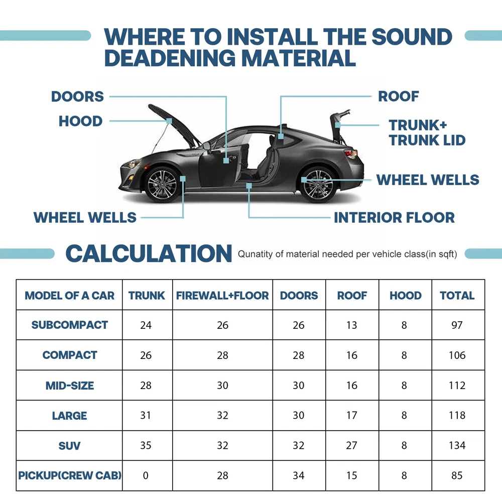 Specification: Material: Double Layer Aluminum, Foam Color: Silver Item Length: 150cm=59in Item Width: 100cm=39in Size: 2pcs 150cm×100cm=3sqm=32sqft Thickness: 5mm=197mil Without Adhesive backing Reinforced / Crush Resistant: Yes Mildew & Mold Resistant: Yes Water resistant: Yes Non-toxic: Yes Feature: Breezesew Best choice of motor parts 2PCS 59"×39" Car Sound Deadening Insulation Heat Barrier Noise Proof Deadener US Specification: Material: Double Layer Aluminum, Foam Color: Silver Item Length: 150cm=59in Item Width: 100cm=39in Size: 2pcs 150cm×100cm=3sqm=32sqft Thickness: 5mm=197mil Without Adhesive backing Reinforced / Crush Resistant: Yes Mildew & Mold Resistant: Yes Water resistant: Yes Non-toxic: Yes Feature: Flexible, crush resistant, non-toxic & fragrance free. Reduces unwanted sound and most vibrations. Keeps your car&home interior cooler in the summer and warmer in the winter. Can make the heat of the engine evenly distributed to avoid overheating the lid. Effectively blocks 97% of radiant heat transfer. Easy to cut, handle, and install. The benefits of sound insulation Reduce road noise If you often drive on uneven roads or on noisy highways, sound insulation can bring you more comfort. It will reduce the noise of roads and other drivers. This will make your driving smoother and have the added benefit of better media listening. Enhance the music Use sound insulation to make your radio clearer. You will no longer have to turn it up because of traffic noise. Not only is it good for music, but audio books and telephones will sound better, too. Improve privacy If you don't want other people on the road to hear what you're listening to, the sound insulation prevents the noise from escaping. Sound insulation will help you. Warm in winter and cool in summer This car insulation will help reduce your interior temperature in the summer, keep you warm in the winter, reduce engine/tunnel/console. Protect car paint In summer, the temperature is too high, the engine runs at high speed and accelerates for a long time, and generates heat, which can easily cause the aging and fading of the car paint; the heat insulation pad can protect it. Increase the life of the car In summer, due to high temperature and long-term driving, it is easy to cause the cabin to heat up and cause a fire, which may seriously damage your car. Using heat insulation pads can extend the life of the car. Fitment: This can be used in any vehicle to insulate & sound proof your entire interior: floor pan, doors, under carpet/seats, headliner/roof, trunk, trunk lids, and firewall (interior side). The Car insulation is used in many automotive applications: muscle cars, hot rods, corvettes, imports, tuners, street rods, rat rods, classic cars, race cars, stock cars, old vintage cars, pickups, trucks, low riders, etc. We even have customers who use it in their airplane, SUV, RV, limousine, camper, boat, motor home, or school bus. Installation: There is NO ADHESIVE on our product but you have several easy options for installing which include spray adhesive, foil tape, double sided tape, glue, etc. Spray adhesive & foil tape in combination work best for installation. Foil tape is optional to use with spray adhesive but helps you achieve the best thermal & vapor barrier. Package Included : 2× Sound Deadener Mat Note: Please allow 1-3cm differences due to manual measurement. Due to the difference between different monitors,the picture may not reflect the actual color of the item.Thank you! If you have any questions or concerns, please contact us using the EBAY messaging system.Thanks! Item Specifics Brand Modigt Color Silver Material Double Layer Aluminum, Foam Type Car Jeep Truck Noise Reduce Dampening Floor Mat Fitment Type Direct Replacement Placement on Vehicle Cargo/Trunk/Bonnet/Dashboard/Under Seat/Doors Notice Self prepared glue or double-sided tape is required Manufacturer Part Number Car Heat / Sound Insulaiton Deadener Superseded Part Number Heat Sound Deadener Insulation Mat Interchange Part Number Deadening Material Insulation Cars & Truck Application 1 Turbo, Front Fender, Rear Fender Application 2 Hood, Firewall, Doors, Floor, Roof Application 3 Ceiling, Underneath bonnets, Underfelt Application 4 Trunk Lid, Trunk Room, Engines, Tailgate Application 5 Underlay, Boot, Panel, Chasis ,SUV, Caravan, Low Rider Application 6 Automotive, Motorhome, Camper, Restorer, School Bus Application 7 Classic Car, Race Car, Stock Car, Old Vintage Car, Pickup Application 8 Van, Truck, limousine, Camper, Boat, Motor Homes Application 9 Muscle car, Hot rods, Corvettes, Imports, Tuners, Street rods Application 10 Cockpit Floor, Tailgate, Firewall U Type Wall, Rat rods Application 11 For Use in The Application Of Any Sound Deadening Application 12 Car& Home Interior Heat Sound Deadener Insulation Function 1 Protects Paint from Blistering Function 2 Reduce the road/ Engine/ Wind noise Function 3 Dustproof, Waterproof, Anti-moisture Features 1 Noise Reduction, Easy to Cut Features 2 Easy Installation, Waterproofing, Fireproofing Features 3 Protects Paint from Blistering, Anti-moisture Item Length 150cm=59inch Item Width 100cm=39inch Thickness 5mm=197mil Size 2PCS 150cm×100cm=3sqm=32sqft Manufacturer Warranty 2 Years Items Included 2PCS 150cm×100cm Sound Deadening Mat Universal Fitment Yes NOTE Without Adhesive backing Payment 1. It will be much appreciated that you finish your payment asap or it will make UPI (unpaid item case) on your account leading to be suspended or restricted by eBay when those UPI cases carry over to certain amount. 2. Any problems please contact us for more details. Shipping 1. All items will be shipped to buyer's ebay address. 2. All items will be shipped within 24-48 working hours upon receipt of payment, and multiple items will be combined shipping. 3. In most cases, delivery takes around 3-5 business days, it's highly depended on the efficiency of the shpping carrier. If your item doesn't arrive on time, ple
