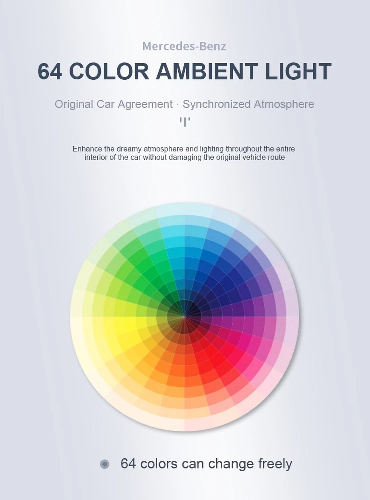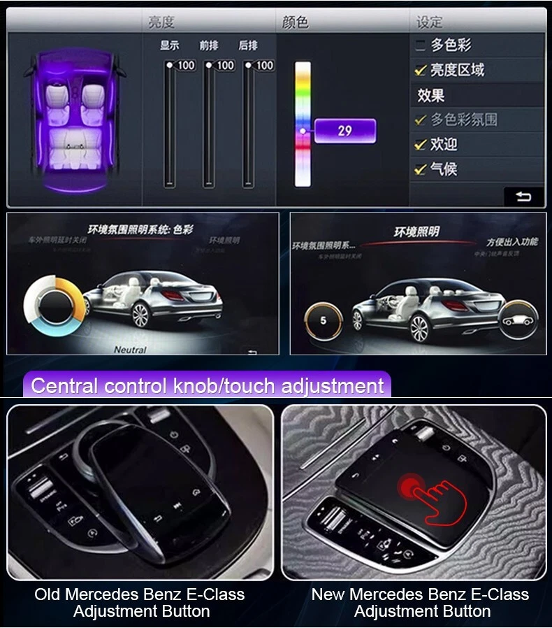 Features: 100% Brand New in Box W213 2PCS/Set 64 Colors NEW Version High Quality Plug and Play Interior Rear Dashboard Air Vent with Ambient Light 1:1 Replacement; NO Modification Required Fitment: For Mercedes Benz E-Class W213 2017 2018 2019 2020 2021( 64 Colors ) - OEM design, fit original air vent position perfectly - Light color is synchronized with original ambient light - Light color and brightness can be controlled by original Command knob Package included: 2 PCS/Set Rear Air Vents with Ambient Light NOTE: NOT Including Installation Guide or Manual. Professional installation is highly recommended .