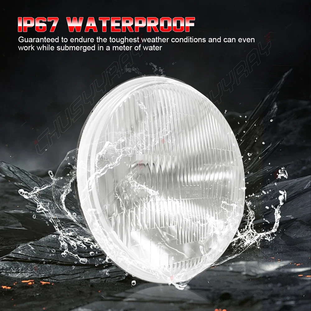 7" Inch Universal Round Cut Chrome Front Clear Glass Lens Diamond Headlights Kit 7" Inch Round Headlight Housing *Black Chrome housing with clear lens design , Lens is made out of clear glass. *Enhance visibility during night time, heavy rain, snow, or dense fog. Precision optics offers a highly controlled concentration of light to enhance visibility. *Direct replacement, easy installation. *High quality O.E grade materials to withstand the most rigorous weather *Compatible For Manufacturer Headlight Part Numbers # H6014 / H6015 / H6024 *These headlights are set up for high and low beams, just simply plug them into your original wiring. *This design is perfect replacement for old sealed-beam round headlight on any vehicle that uses standard 7” bucket. H4 HB2 9003 LED Headlight Bulbs Specifics -Color: 6000K Cool White -Power Consumption: 50 Watt -Luminosity: 10,000 LM -360 Degree / U6S Series CSP Chip Perfect Beam Angle -H4 - Dual Beam Function (You will have HIGH AND LOW!) -500% Brighter than Stock Halogen -Built in IC Circuit (Current Regulator)-Prevents LED Damage From Voltage Variations & Spikes. -Lifespan: 50,000 Hours -Operating Voltage: DC 12V / 24V -Amperage: 1.9A - 2.9A -Maintenance free, Waterproof IP67, Shockproof -Warranty 5 years Top Features 300% Brighter than Halogen: 50W 6000K cool white, 1w=100lm, with clear visibility and perfect beam pattern, so you can enjoy good vision while driving at night. Super Focused Beam Pattern: U6Splus led bulbs with 1.0mm ultra-thin centered light emitting. No dark spots or foggy light, do not blind oncoming traffic. 10mins Easy Installation: The LED bulb’s almost 1:1 design as halogen. Plug and play. No other tools are needed 360° Adjustable Beam Pattern: Adopts 360° adjustable locker ring to ensure the best beam pattern. except H1, H3, 880, PSX26W 50,000 hours Lifespan: U6S plus comes with a copper base board, cold pressed aluminum heat sink and 12,000rmp cooling fan. Better solve the dimming or over heated of led bulbs. Parcel Content: - 2 * 2-side H4 Headlight Bulbs - 2 * 7" inch headlight housing On Nov 19, 2024 at 20:57:31 PST, seller added the following information: