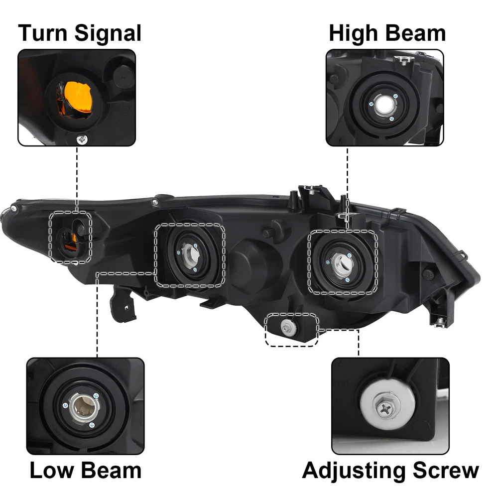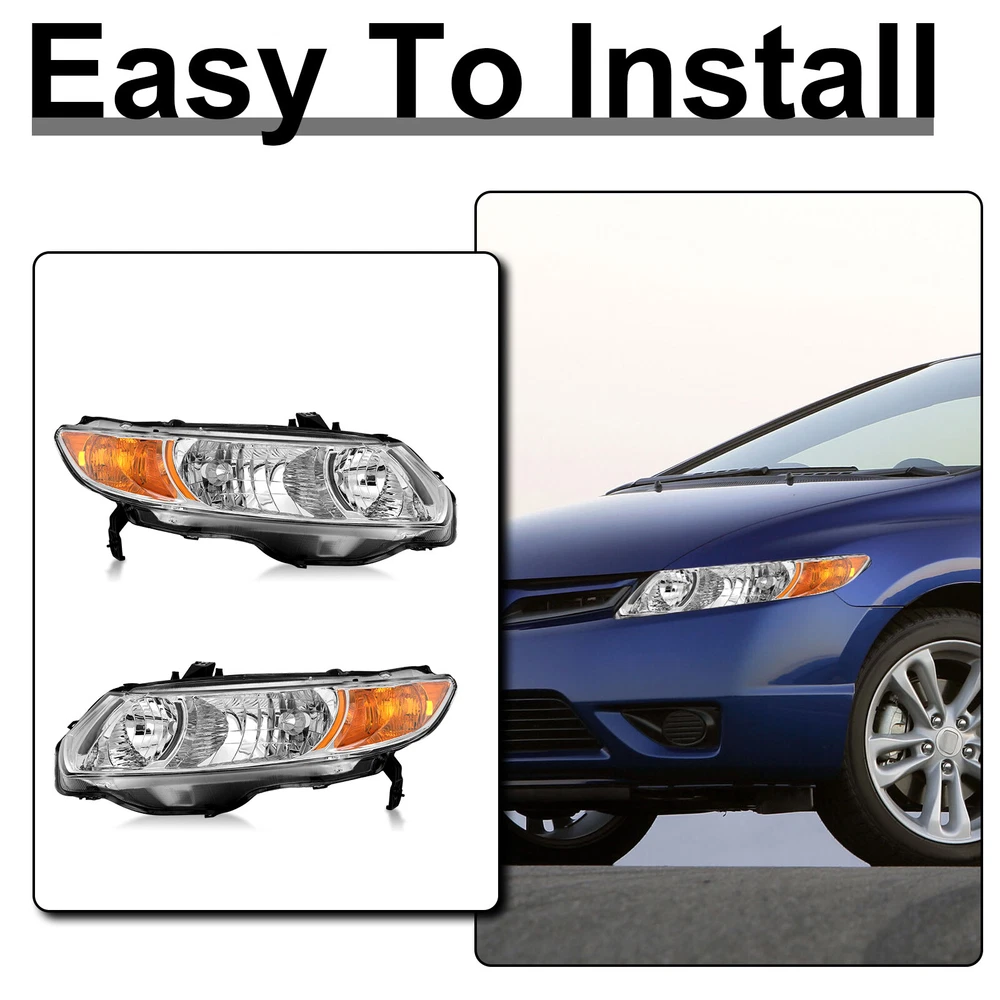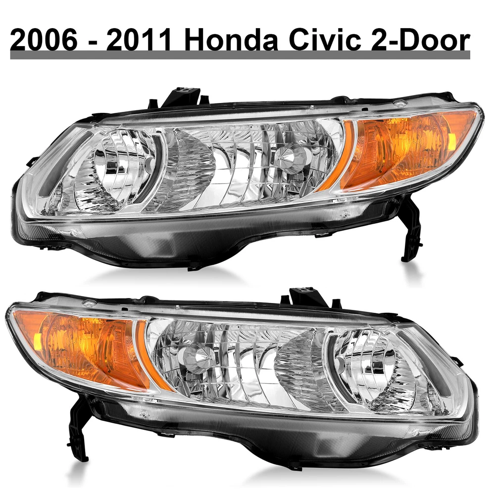 2PCS Headlights For 2006-2011 Honda Civic 2-Door Coupe Headlamps LH+RH Pair Specifications: 1.Color: Black Housing Amber Reflector 2.Material: ABS Plastic+ Polycarbonate Lens 3.The bulb type: High Beam:HB3 (Blubs Not included) Low Beam: HB4 (Blubs Not included) Features: 1.Anti-UV coating specially added to strengthen the lenses 2.Well sealed with premium silica glue and gone through air-tight tests 3.Plug and play operation; no drilling or wiring required 4.Meet or exceed DOT and SAE standards 5.Professional Installation is Highly Recommended. Installation Instruction is NOT Included. 6.3-Months Limited Warranty. Buy With Confidence! Compatible With: 2006-2011 Honda Civic 2Dr Sedan Model Only Not compatible with 4Dr Model Package includes: 1 pair of Headlights Driver and Passenger Side ( Left and Right Side ) Payment Shiping Policy Returns Policy Feedback Contact us Payment We accept PayPal, Google Pay, Credit Cards, and Debit Cards. Shiping Policy All Orders Will Ship Within Two Business Days.Except PR,HI,AK,GU and PO Box addresses. No local pick up All Packages Will Be Inspect Before Shipping, We Will Provide All Packing Material Needed For Your Package For Shipping Such As Boxes, Cushioning And Tape To Improve Shipping Quality. Very Important: Double check shipping address. We are not responsible for incorrect or undeliverable addresses. Returns Policy 60 Days returns satisfaction guarantee. All of Our Items Are 100% Brand New. If The Item Shows Up Defective or Broken, Please Contact Us Within 3 Business Days By Using "Ask A Question" Link Located At The Bottom of Our Listing. Your Questions/Concerns Will Be Responded Within 12 Hours Monday To Friday. Buyers May Contact us On The Weekends or Pubic Holidays And We Will Respond On The Next Working Day. We Will Offer Replacements, Exchange or Full Refund. 100% Satisfaction Guaranteed. We Will File Damage Or Lost Claim For Our Buyers Feedback We will leave a positive feeback immediately after payment is received. We appreciate a positive feedback as much as you do. If you have any issue with order,pls. contact us before leaving a feedback. We will glad to resolve your issue.Your satisfaction is our priority. Contact us If you have any concerns, Pls. feel free to contact us at any time.