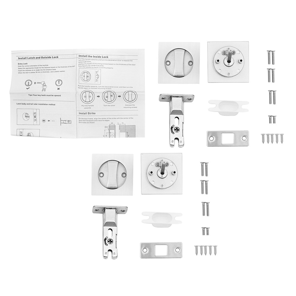 Specifications Color: Silver Material: Zinc Alloy, Copper, Stainless Steel Process: Electroplated, Wire Drawing Assembly Required: Yes Mounting Type: Door Mount Suitable Door Thickness: 30-50mm/1.18-1.97in Square Lock Panel Size: 65*65mm/2.56*2.56in Lock Panel Thickness: 2mm/0.08in Knob Handle Length: 43mm/1.69in Round Lock Diameter: 46mm/1.81in Center Distance: 60mm/2.36in Front Installation Hole Diameter: 53mm/2.08in Side Installation Hole Diameter: 25mm/0.98in Side Groove Size: 57*26mm/2.24*1.02in Packaging Size: 20*18*9cm/7.87*7.09*3.54in Gross Weight: 1.2kg/2.65lbs Package Included 2*Square Locks 1*English Installation Manual Other Needed Accessories 2PCS Pocket Door Square Lock Square Lock Kit Knobs Door Lock 2.56*2.56" Silver Specifications Color: Silver Material: Zinc Alloy, Copper, Stainless Steel Process: Electroplated, Wire Drawing Assembly Required: Yes Mounting Type: Door Mount Suitable Door Thickness: 30-50mm/1.18-1.97in Square Lock Panel Size: 65*65mm/2.56*2.56in Lock Panel Thickness: 2mm/0.08in Knob Handle Length: 43mm/1.69in Round Lock Diameter: 46mm/1.81in Center Distance: 60mm/2.36in Front Installation Hole Diameter: 53mm/2.08in Side Installation Hole Diameter: 25mm/0.98in Side Groove Size: 57*26mm/2.24*1.02in Packaging Size: 20*18*9cm/7.87*7.09*3.54in Gross Weight: 1.2kg/2.65lbs Package Included 2*Square Locks 1*English Installation Manual Other Needed Accessories Description Do you want a door lock that is easy to install, doesn't hurt the door frame, and looks great? This pocket door square lock will be your ideal choice. The unique design allows it to be embedded in the door body, hiding the inner metal structure, giving you a pure and coherent visual enjoyment of the space, and at the same time constructing an invisible but solid protective barrier for your private space. Key Features Build to Last: Made of zinc alloy, copper, and stainless steel and processed by electroplating and wire drawing, the product has high hardness, long service life, and good resistance to corrosion, wear, and deformation. High Security: The delicate structure and craftsmanship of the double hook door lock design greatly improve the sturdiness and anti-theft ability and make the lock tongue effective in preventing violent unlocking. User-friendly Design: You can use a flat object such as a coin to unlock it, which is very convenient and friendly to your family members. Simple Installation: With the English installation manual and needed accessories in the package, you can finish the installation with less effort. 2 Pieces One Set: The 2-lock set gives you the convenience to meet the usage of 2 doors in your room and saves you effort on reordering. Wide Compatibility: The product comes with a lock core insert that can be cut to fit doors with different thicknesses (1.18-1.97 inches). Good Appearance: Its latch part will be hidden inside the door, so that it can be harmoniously integrated with the door, making your space decoration more coherent and natural, giving you visual enjoyment. Customer Service: We aim to provide quality products and services. If you have any problems, please feel free to contact us. We will reply and solve the problem for you as soon as possible. Details Rounded Edges: They provide you with a smooth touch feeling and prevent your skin and finger from scratches during installation or daily use. Smooth Knob: The easy-grip knob ensures a more efficient turn, so you can open and close the door smoothly. Application The product can be installed on wooden doors, metal doors, etc., and is suitable for the bedroom, bathroom, study, kitchen, toilet, or other rooms. Notes Please check the size carefully before ordering. Please read the English manual carefully before installation. Please allow the slight color difference caused by the shooting light and 1-3cm error due to manual measurement, and make sure you do not mind before you order. Payment Delivery details Terms of sales About us Contact us Payment We accept ebay payment 。 Fees such as import duties, taxes are not included in the item price or shipping costs. These charges are the buyer's responsibility. Delivery details Shipping: 2-9 working days to: USA Terms of sales We maintain high standards of excellence and strive for hundred percent customer satisfaction. Feedback is very important to us. We hope that you contact us immediately before you give neutral or negative feedback, so that we can address your concerns. It is impossible to address issues if we do not know about them! About us Your satis faction is our ultimate goal. We work hard to earn your trust and future business. Our certified technicians have tested each item before shipping. The unit comes with 1 year limited warranty on all manufacturing defects. a) If you receive a defective item, you may return it or ask for a discount. Please contact us within 14 days after you receive the package. b) What you returned must be intact and in its original packaging as re? u. Customer is responsible for shipping costs of the returned item. c) We will cover the cost of shipping back t with the shipping rate indicated in the registration page. We will send you a new unit or refund the full payment you paid. Thank you. Contact us Business Hour Business Hour: Monday To Friday: 8:30 AM to 5:00 PM (Beijing China time) Due to time zones, our reply to your questions may not be immediately. But within above working time, we will reply your email within 24 hours. If it's non-workdays, please kindly be patient and wait till Monday. Please contact us with ebay message. Please feel free to contact us if you have any questions. Monday To Friday: 8:30 AM to 5:00 PM (Beijing China time) Due to time zones, our reply to your questions may not be immediately. But within above working time, we will reply your email within 24 hours. If it's non-workdays, please kindly be patient and wait till Monday. Please contact us with ebay message. Please feel free to contact us if you hav