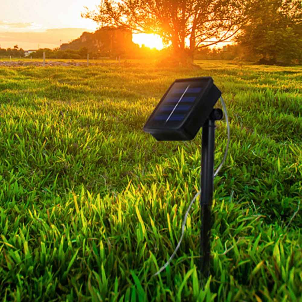 65ft 200 LED Solar Powered Fairy String Rope Strip Lights Waterproof Outdoor Lighting Patio Yard Garden Decor Description: LED fairy lights: String with 200 strong and long-lasting LEDs, the light can instantly create a romantic atmosphere that allows the people who are in it to enjoy the moment of happiness. Easy to design: Made of thin and flexible copper wire. Flexible copper wire can easily build the shapes. Waterproof and safe: IP65 waterproof Provides your fairy lights with good protection against splash water or spray water from every angle. Ideal for indoor and outdoor use. (but must not be immersed directly in water) Solar charging: Press the ON/OFF switch, during the day the efficient solar panel converts sunlight into electrical energy that is stored in the built-in battery (the light does not light up). At night the fairy lights light up automatically. Wide applications: These fairy lights are a great decorative accessory for lighting indoor and outdoor areas such as gardens, patios, fences, gates, gardens, weddings, parties, Christmas trees, etc. Specifications: Power Source: Solar Powered Light Color: Warm White Wire Type: Copper Wire 20 M---200 LEDs Solar Panel: 1.2 V Solar Panel Size: 10cm x 9.4cm/3.9inches x 3.7inches 8 Lighting Modes: Combination, Fireflies Flashing, Waves, Fading, Chasing/Flashing, Fading Slowly, Twinkle/Flashing and Steady On. Charging Time: 6 - 8 h Working Time: Duration: 8 - 12 h Waterproof: Yes. Can be used outdoor, do not put into water. Package Includes: 2 x 20M Solar LED Fairy Lights 2 x Solar Panel 2 x Pointed Ground Stake Note: Solar powered LED fairy light please set the switch to On to activate the solar panel before charging. Light shooting and different displays may cause the color of the item in the picture a little different from the real thing. The measurement allowed error is +/- 1-3cm. If you still have any issues during installation, defective items, replacements or refund, please contact our customer service e-mail for a prompt solution, we will get it resolved within 24 hours. Please rest assured that we always get your back whenever you are in need of assistance.