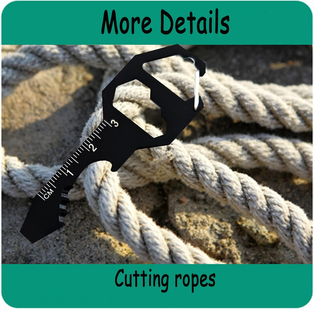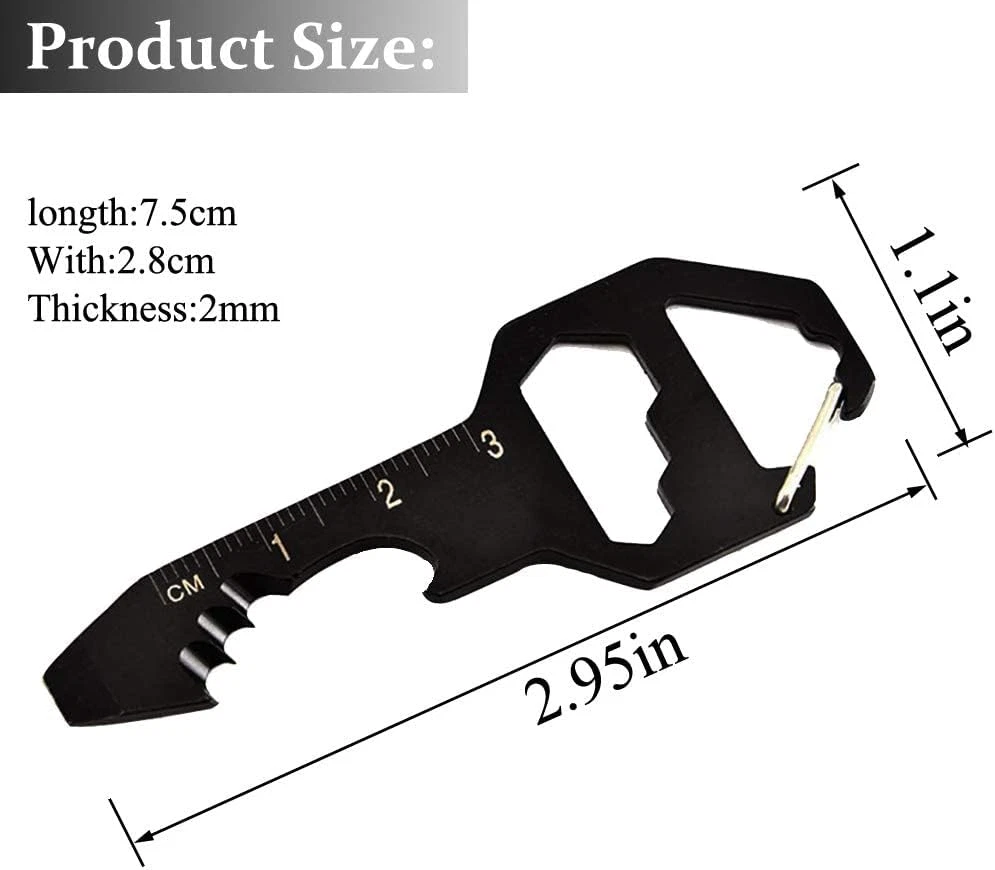 【6 In 1 Extremely Functional】Key multitool(2PCS) packs 6 tools into a key-sized key chain multi-tool including a Bottle Opener,a Flathead Screwdriver,Metric Ruler,a Cord Cutter,a Wrench of Various Inches 【A Multitool The Size Of A Key】Our super compact and lightweight multitool key can easily fit in your Keychain,you can carry it with you everywhere you go.Little key design is specifically meant to occupy as little space as possible while being your ultimate outdoor companion 【Stainless Steel Material】Made with extra-durable stainless steel, our key tool will never let you down.Its corrosion-resistant design will never bend or break and it will always remain good. Get it now and you’ll simply never have to replace it 【Handy Tools Everyday Needs】You will never know when this multipurpose key tool will come in handy.Great for normal people living their everyday lives and a necessary for travelers,backpackers,hikers,bicyclists and adventurers 【An Practical Tool】If you are looking for a suprise for your father, brother or friend. Think about this, you have just found the most unique and practical key tools that any man would appreciate. So get this key Multi-Tool for them and they will love it Product Description 2PCS Keychain Bottle Opener Multitools-Key Size Small Pocket Gadgets for Men or Women Compact Keychain Multitool: Bottle Opener, Flathead Screwdriver, Metric Ruler, Cord Cutter, Wrench Indispensable addition for outdoor enthusiasts, travelers, backpackers, cyclists, anyone needing handy tools Q:What are the different tools included in this keychain tool? A:This keychain tool includes a bottle opener, flathead screwdriver, metric ruler, cord cutter, and wrenches of various sizes Q:How many small key size tools will I receive? A:2PCS in the package, one Silver and one Black Q:Is this gadget suitable for all keychains? A:Yes, this gadget fits most keychains, and easy to use Q:Can this keychain multitool be used for emergency situations? A:This keychain tool could potentially assist in emergency situations, but it is not specifically designed for that purpose