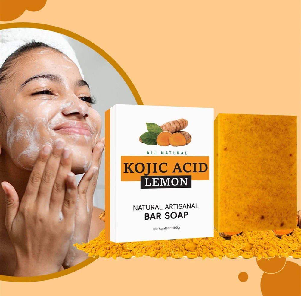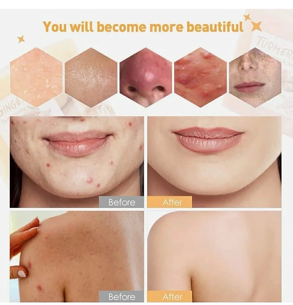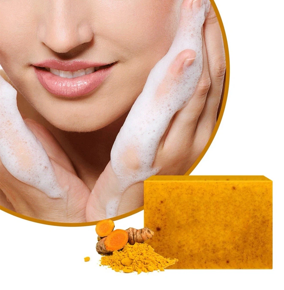 This product is a set of 2 turmeric soaps specifically formulated for skin whitening, dark spot lightening, and acne brightening. Made with natural ingredients such as turmeric powder, ginger extract, aloe extract, and citrus, these bars are suitable for all skin types and can be used daily for optimal results. The soaps also contain additional beneficial ingredients like aloe vera and ginseng, with a refreshing lemon scent for a relaxing cleansing experience. Perfect for both men and women, this product is a great addition to any skincare routine for achieving a clearer and brighter complexion.