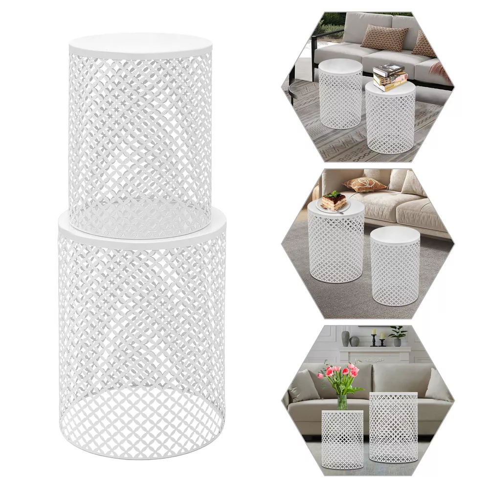 2PCSModern In/Outdoor Side Table Metal Frame Accent Table Round End Table Decor Welcome to my store 2PCSModern In/Outdoor Side Table Metal Frame Accent Table Round End Table Decor Description Made of high-quality iron through the spray molding process, this side table is sturdy and durable to ensure long-term use. The top has a smooth placing surface and the openwork design on the surface is very pleasing to the eye. It is a great table to place in a garden corner or patio, and can also be a good decoration for a patio and home. Key Features Build to Last: It is made of high-quality iron with a spray molding process , sturdy, waterproof, rustproof, and wear-resistant , with high impact and shatter resistance , so it can be placed outdoors all year round, and has a long service life. Strong Load-bearing Capacity : The high-quality iron material and sturdy construction allow this product to withstand large weights( 66.14lbs , 33.07lbs ), allowing you to use it with confidence. Suitable Height : The height of 19.29in and 16.54in are suitable for most people's height, which is ideal for putting books, drinks, snacks, and flowers (not included) on top to be within reach. Set of 2: The product package includes two tables of different sizes, which are enough to meet your usage needs. In addition, you can purchase more to meet your needs. Powerful Function: It can be used not only as a table end/side table, nightstand, decorative table and plant stand in living rooms, bedrooms, balconies and offices, but also as a decorative item in gardens, patios, decks and backyards. Enjoy Cozy Time: You can place this table on your balcony to enjoy a cup of afternoon coffee, or you can place it in your garden to view the flowers you have planted and feel the spring. Space-saving : Its maximum size is only 14.57*19.29in, and you can nest it without taking too much space. You can easily put it on the balcony, by the sofa and so on. In addition, the spacious bottom space can be used for storage, thus saving you even more storage space. Vintage and Elegance: It comes in a classic white color scheme that is simple and warm. The unique openwork floral pattern gives it a classic chic appeal and interesting light and shadow effect that will fit nicely into any modern, vintage and rustic decor. Hassle-free Cleaning: Thanks to its smooth surface and simple structure, you can easily clean it with water and a rag (not included). Details Openwork Pattern: The circumference of the product is designed with with openwork floral patterns, which is not only highly aesthetic but also allows ventilation. Smooth Edges: Its tabletop edges are designed with smooth curves, so it effectively avoids scratching your body and your clothes. Application It is suitable for use in gardens, balconies, bedrooms, living rooms, kitchens, cafes, parks, porches, backyards, pool sides, decks, lawns, taverns, and other places. Specifications Material: Iron Process: Spray Molding Style: Modern Color: White Indoor/Outdoor Usage: Indoor and Outdoor Mount Type: Freestanding Shape: Cylindrical Assembly Required: No Load-bearing Capacity: 30kg/66.14lbs, 15kg/33.07lbs Number of Items: 2 Gross Weight: 3.92kg/8.64lbs Net Weight: 3.4kg/7.94lbs Package Size: 53*43*43cm/20.87*16.93*16.93in Product Size Large(D*H): 37*49cm/14.57*19.29in Medium(D*H): 32*42cm/12.6*16.54in Package Included 2*Side Tables Notes Please double-check that the size fits before ordering. Please note that this product is intended for decorative use in most places and items placed must be within the load-bearing range. Please note that items such as drinks and magazines are not included in this product. Please allow the slight color difference caused by the shooting light and 1-3cm error due to manual measurement, and make sure you do not mind before you order. NOTE NOTE:The bottom of table is not very slip resistant and cannot be used as a garden stool. Payment Delivery details Terms of sales About us Contact us Payment We accept ebay payment 。 Fees such as import duties, taxes are not included in the item price or shipping costs. These charges are the buyer's responsibility. Delivery details Shipping: 2-9 working days to: USA Terms of sales We maintain high standards of excellence and strive for hundred percent customer satisfaction. Feedback is very important to us. We hope that you contact us immediately before you give neutral or negative feedback, so that we can address your concerns. It is impossible to address issues if we do not know about them! About us Your satis faction is our ultimate goal. We work hard to earn your trust and future business. Our certified technicians have tested each item before shipping. The unit comes with 1 year limited warranty on all manufacturing defects. a) If you receive a defective item, you may return it or ask for a discount. Please contact us within 14 days after you receive the package. b) What you returned must be intact and in its original packaging as re? u. Customer is responsible for shipping costs of the returned item. c) We will cover the cost of shipping back t with the shipping rate indicated in the registration page. We will send you a new unit or refund the full payment you paid. Thank you. Contact us Business Hour Business Hour: Monday To Friday: 8:30 AM to 5:00 PM (Beijing China time) Due to time zones, our reply to your questions may not be immediately. But within above working time, we will reply your email within 24 hours. If it's non-workdays, please kindly be patient and wait till Monday. Please contact us with ebay message. Please feel free to contact us if you have any questions. Monday To Friday: 8:30 AM to 5:00 PM (Beijing China time) Due to time zones, our reply to your questions may not be immediately. But within above working time, we will reply your email within 24 hours. If it's non-workdays, please kindly be patient and wait till Monday. Please contact us with ebay message. Please feel free to contact us if you have