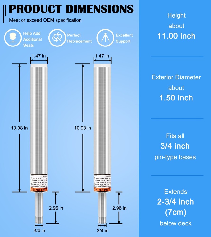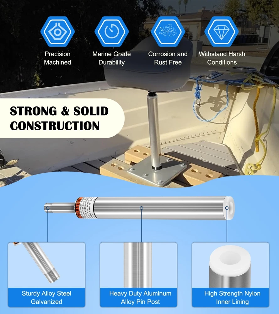Feature 【Extremely Versatile】This SP-2114 Lock-in Boat Seat Pin Post features with 11" height, 1.5" exterior diameter, fits all 3/4 inch pin-type bases and most standard 7" x 7" marine boat seats base pedestal mount, such as Pontoon Boats, Bass Boats, Fishing Boats, Cruising Boats, Travelling Boats, Jon Boats, Round Boats, Deck, Dock, etc. It can be also combined with other boat seats and bases to meet you boating requirements. 2PCs SP-2114 Boat Seat Post for Boat Seat Pedestals & Bases, 11" Boat Seat Pole Feature 【Extremely Versatile】 This SP-2114 Lock-in Boat Seat Pin Post features with 11" height, 1.5" exterior diameter, fits all 3/4 inch pin-type bases and most standard 7" x 7" marine boat seats base pedestal mount, such as Pontoon Boats, Bass Boats, Fishing Boats, Cruising Boats, Travelling Boats, Jon Boats, Round Boats, Deck, Dock, etc. It can be also combined with other boat seats and bases to meet you boating requirements. 【High Performance】 This 3/4" boat seat mount pole perfectly fits in mounting holes and boat seat extension post pole, specially designed to add new seats and replace the existing seat system, helps you easily install additional boat seating, also perfectly replace the old boat seat pedestal pole in boat seats, providing you with an optimal boating seating solution for the best use of your boat. 【Optimal Design】 Features Slotted Design and Smooth 360 Degree Swivel with good load bearing capacity and perfect fit holes, prevents accidental detachment and separation for boat seat pedestal mount, 3/4" boat seat extension post and base. The non-threaded steel pin use 3/4" pin-type mounting and tight fit nylon bushing for secure installation. 【Comfort and Convenient】 This Lock-in Boat Seat Extension Post Pin Pole offers ideal seat height for comfortable sitting position to reduce fatigue, effectively improves your overall boat travelling or fishing experience, also makes operate the foot pedal trolling motor more safe and easy. 【Built-to-Last】 The Marine Boat Seat Pedestal Base Post Pole is made from top quality aluminum alloy with non-threaded steel pin for solid construction, high strength, prevent corrosion and rust, wear and impact resistance, can withstand all harsh marine conditions. High precision and hardness ensure long-term reliable service. 【100% Satisfaction Guarantee】 If you're not satisfied with this SP-2114 Marine Boat Seat Pedestal Base Post for Mounting Boat Seat, simply return it for getting refund in 30 days. While you have any questions about our products, please feel free to contact us and we will provide the best service. Item Specifics Brand LUAUTO Manufacturer Part Number SP-2114 Fitment for Boat Seat Pedestals & Bases, 11" Boat Seat Pole Color Silver Warranty 1 Year Custom Bundle No Type SP-2114 Boat Seat Post Number of pieces 2PCs Bundle Description No Single item or set Set Payment 1. Payment methods accepted: Payoneer . Our Payoneer account allows you to pay by credit card, debit card and your paypal balance. 2. We ship items to Your Ebay address .Please make sure your Ebay address is correct before you pay, cause it cannot be changed once the order shipped out. 1. All major credit cards are accepted through our secure payment processor Paypal. 2. We ship items to Your Paypal address .Please make sure your Paypal address is correct before you pay, cause it cannot be changed once the order shipped out. 1. All major credit cards are accepted through our secure payment processor Paypal. 2. We ship items to Your Paypal address .Please make sure your Paypal address is correct before you pay, cause it cannot be changed once the order shipped out. 1. All major credit cards are accepted through our secure payment processor Paypal. 2. We ship items to Your Paypal address .Please make sure your Paypal address is correct before you pay, cause it cannot be changed once the order shipped out. 1. All major credit cards are accepted through our secure payment processor Paypal. 2. We ship items to Your Paypal address .Please make sure your Paypal address is correct before you pay, cause it cannot be changed once the order shipped out. 1. All major credit cards are accepted through our secure payment processor Paypal. 2. We ship items to Your Paypal address .Please make sure your Paypal address is correct before you pay, cause it cannot be changed once the order shipped out. 1. All major credit cards are accepted through our secure payment processor Paypal. 2. We ship items to Your Paypal address .Please make sure your Paypal address is correct before you pay, cause it cannot be changed once the order shipped out. 1. All major credit cards are accepted through our secure payment processor Paypal. 2. We ship items to Your Paypal address .Please make sure your Paypal address is correct before you pay, cause it cannot be changed once the order shipped out.v 1. All major credit cards are accepted through our secure payment processor Paypal. 2. We ship items to Your Paypal address .Please make sure your Paypal address is correct before you pay, cause it cannot be changed once the order shipped out. 1. All major credit cards are accepted through our secure payment processor Paypal. 2. We ship items to Your Paypal address .Please make sure your Paypal address is correct before you pay, cause it cannot be changed once the order shipped out. 1. All major credit cards are accepted through our secure payment processor Paypal. 2. We ship items to Your Paypal address .Please make sure your Paypal address is correct before you pay, cause it cannot be changed once the order shipped out. 1. All major credit cards are accepted through our secure payment processor Paypal. 2. We ship items to Your Paypal address .Please make sure your Paypal address is correct before you pay, cause it cannot be changed once the order shipped out. 1. All major credit cards are accepted through our secure payment processor Paypal. 2. We ship items to Your Paypal addr