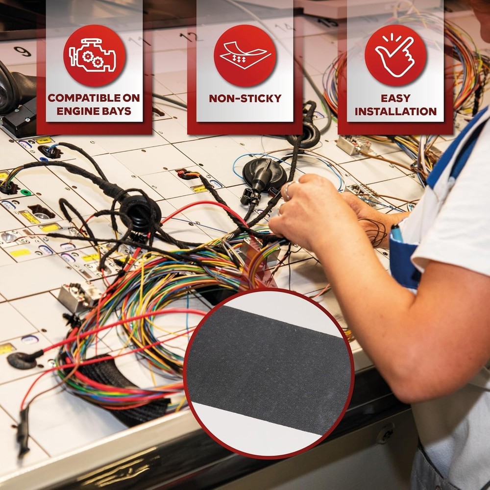 This wire harness tape is a game-changer! The heat-resistant fabric is super durable and easy to work with—perfect for organizing messy cables in cars, boats, or electronics. The 2-inch width gives great coverage, and the adhesive sticks well without leaving residue. Love that it comes in a 2-pack; such a great value for the quality. Works like a charm for bundling wires and looks clean too! Highly recommend for any wiring project.