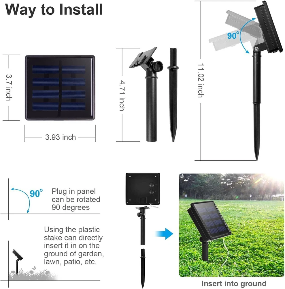 Meinuousa Your Best Online Business Partner 2Pack 200 LED Solar Fairy String Lights Copper Wire Multi-Color Party Xmas Decor 【Specification】 Material:copper wire Light Color:Warm white LED quantity:200 Leds String length:20M/65.6ft Copper wire Solar panel: 1.2v 150ma The actual size of NiMH: 200 lights for 800mah 8 Mode : 1: automatic continuous change 2-8 mode; mode 2: wave forward and back; mode 3: dual-lights racing; mode 4: single light fades brighter and darker; mode 5: stars twinkling with racing changes; 6: Dual lights fade in and out at the same time; Mode 7: Stars are blinking; Mode 8: All bright. 【Instructions for use】 Press the ON/OFF switch, the light string will work, automatically charge during the day (the light is off), and automatically light up at night. Set to the desired lighting mode by pressing the MODE button. 【Feature】 Flexible Copper Wire Lights - can be easily bended and molded into to any shapes you desire. Low voltage power and non plug-in. 2 buttons to control. One for power on/off, and another for 8 modes to choose steady/flashing. Put under sunlight during the day, and it begins to light up at night automatically when power on. The lights are suitable for Indoor and Outdoor decorations, because of the lights and the solar panel are both waterproof. Live, Love, Create, add a warm and charming atmosphere for your Christmas decorations,home, patio, lawn, garden, shop, bar, café, restaurant, balcony, walkways, pergola canopy, and more. Note : The solar panel must remain directly exposed to sunshine for a whole day to conserve sufficient solar power before first use. Payment Shipping Returns Contact Us About US - We accept the payment through :Credit, debit, and gift cards, Apple Pay, Google Pay, PayPal, and PayPal Credit. - Payment must be fulfilled within 4 days after the end of auction. - Please make sure your ebay address is correct. Or not, please correct it before payment. - If you are a big customer, Please contact with us about the item's PRICE and SHIPPING. - Your feedback & suggestion is deeply appreciated, thanks. 1. Please make sure your address in ebay is correct. 2. We will only follow your address listed in the ebay orders for the shipment. 1. We can exchange the item within 30 days after you received it if it is defective. 2. Returned item must have all original packaging and accessories. 3. Buyer are responsible for the returning shipping costs. 1. We greatly appreciate your POSITIVE feedback. 2. Negative or Neutral feedback does not resolve any underlying issues that you may be experiencing as a buyer. 3. Any question or unsatisfaction please contact us with ebay message, we will sincerely solve for you. Feedback is very important to us, if you are satisfied with us, please leave us 5 star positive feedback to us. If you h have any problem, please contact us first BEFORE you give us neutral or negative feedback, so we can try our best to help you solve your problem. All rights reserved.