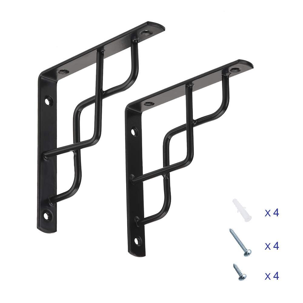 Product Description This black shelf bracket is perfect for display bookshelf, bookracks, storage shelf ,exhibition stand , decorative shelf support. etc. Made of heavy duty cast iron, with premium matte black powder coat finished, adds a touch of industrial and rustic taste to your home Coming with screws and anchors, easy to install. Shelf Brackets Dimension-6*6inch(150*150mm); Thickness-3mm; Width-20mm Package included: 2 x Angle Brackets,4 x long screws, 4 x short screws and 4 x anchors, NO WOOD BOARD INCLUDED WIDE APPLICATION---This black shelf bracket is perfect for display bookshelf, bookracks, storage shelf ,exhibition stand ,decorative shelf support, etc. STURDY & RUSTIC--- Made of heavy duty cast iron, with premium matte black powder coat finished, adds a touch of industrial and rustic taste to your home EASY INSTALLATION --- Coming with screws and anchors, easy to install. MEASUREMENT--- Shelf Brackets Dimension-6*6inch(150*150mm); Thickness-3mm; Width-20mm PACKAGE INCLUDED –-- 2 x Angle Brackets,4 x long screws, 4 x short screws and 4 x anchors, NO WOOD BOARD INCLUDED