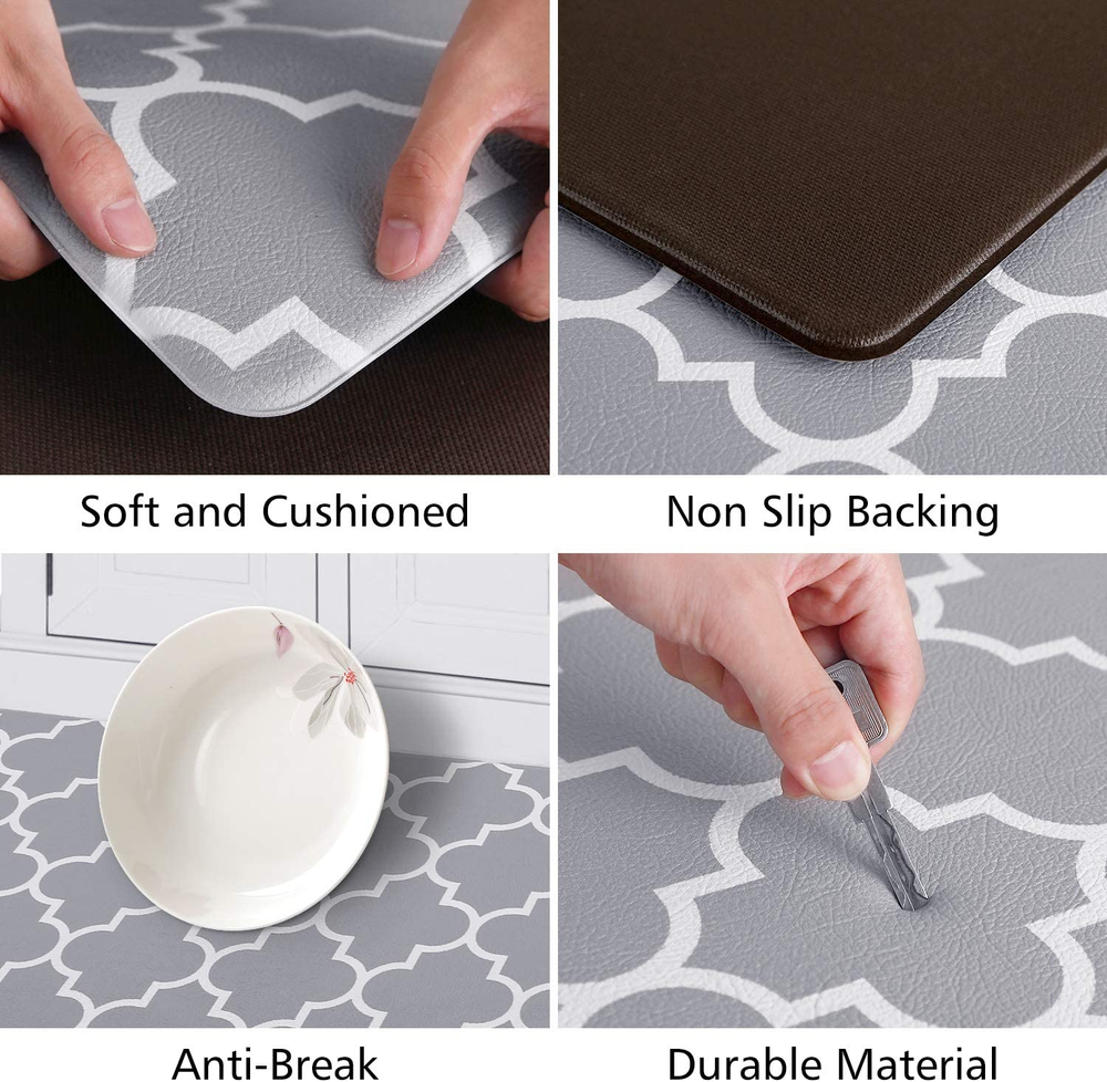 Just got these kitchen mats and they're amazing! So comfortable to stand on while cooking, and the non-slip feature works perfectly. Love that they're waterproof and easy to clean. Definitely a game-changer for my kitchen!