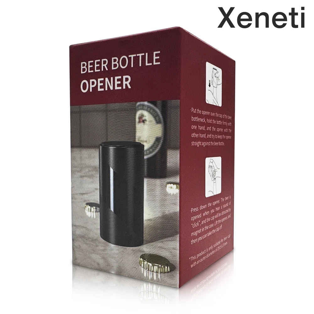 Automated Push Down Beer Bottle Opener/ With Magnetic Cap Catcher/ No damag Cap. Very portable. Perfect for parties and bartending. Great for people with arthritis, bottle cap collectors, bartenders, birthday gifts, Father’s Day gifts and many more! Comes in sets of 2 bottle openers